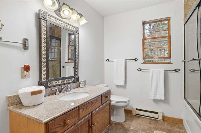 This move in ready 3-bedroom, 2-bath retreat is filled w/ natural light & thoughtful updates. You'll appreciate the fresh interior paint & wood floors throughout. The 1st floor offers an open layout w/ a spacious living room featuring vaulted ceilings, skylights, cozy wood stove & beautiful custom casework. Kitchen w/ dining, full bath w/ steam shower & flexible den add comfort & convenience to round out the 1st floor. Upstairs, you ll find 3 bedrooms, an office & another full bath. Standing seam metal roof, owned solar, self cleaning gutters (2018), ductless mini-splits, whole-house generator & owned propane tank provide self reliance and year-round peace of mind. This lovely wooded, level lot w/ flagstone patio, fire pit, grape arbor, fruit trees, berry bushes, garden, chicken coop, tool shed, dry wood storage and hiking trail access from the back yard offer all the comforts of country living while still being conveniently located. **HIGHEST & BEST DUE BY 5pm TUES 11/11**