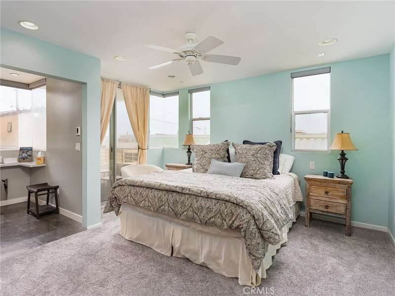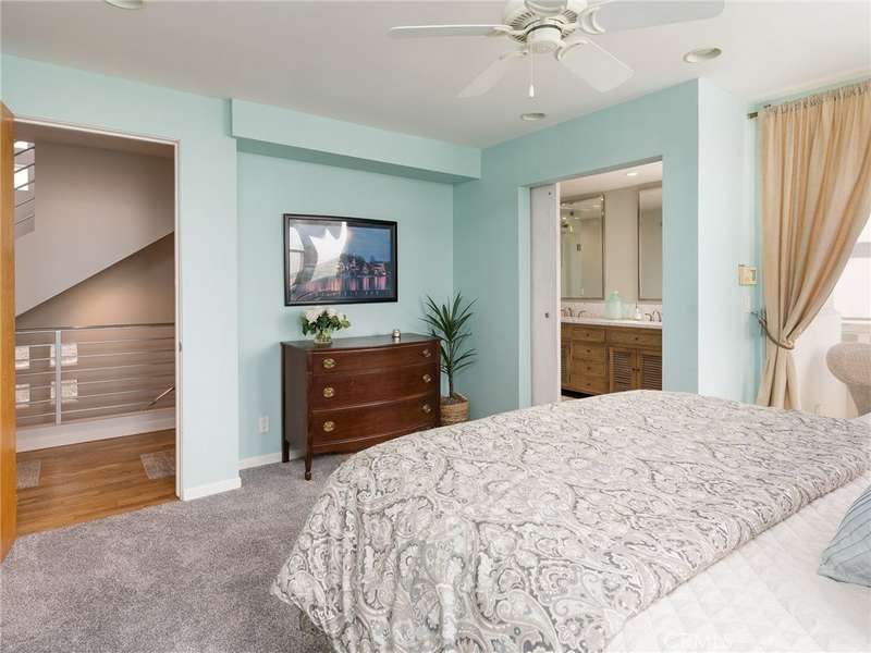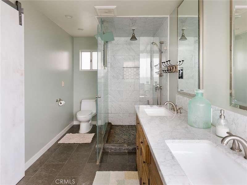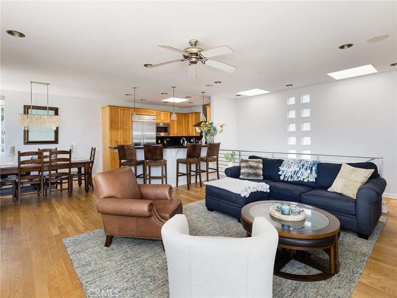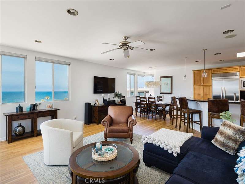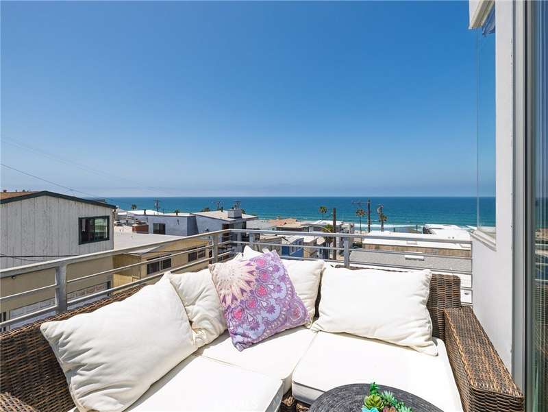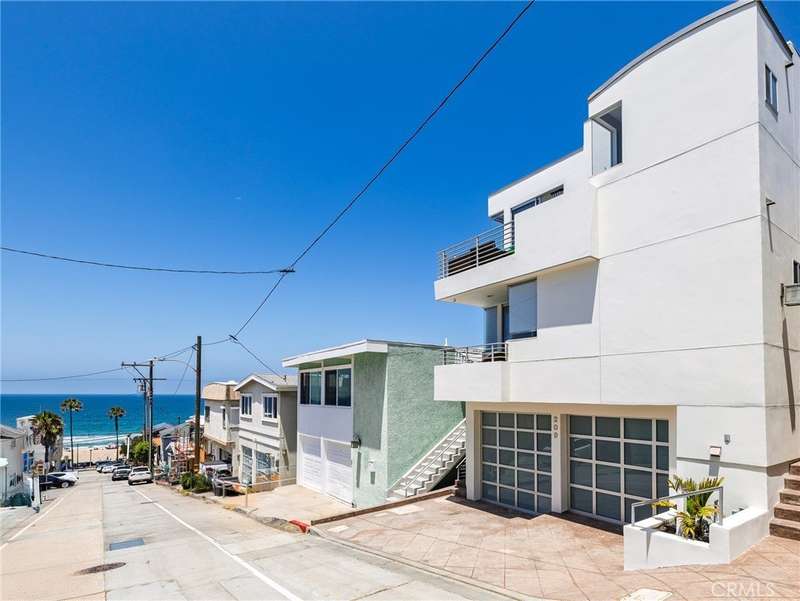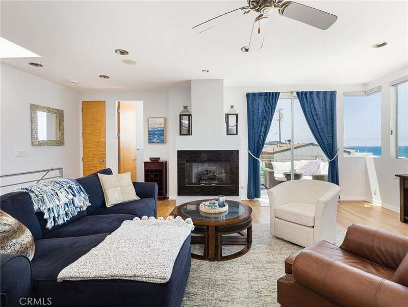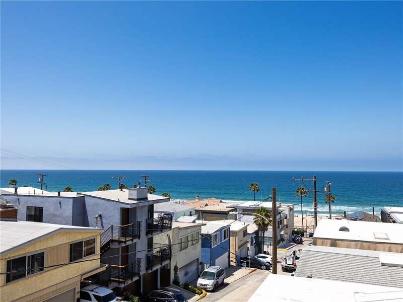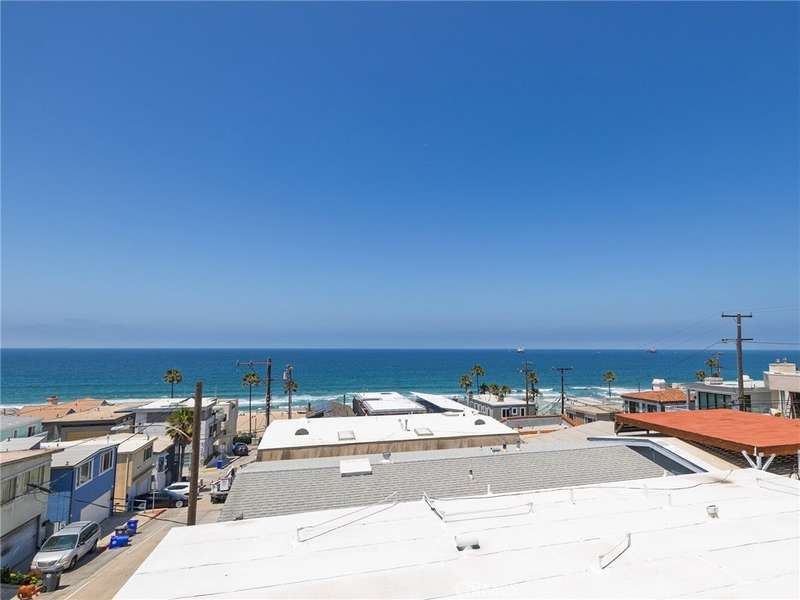 Located in the heart of Manhattan Beach’s coveted El Porto neighborhood, 209 41st Street offers stunning unobstructed ocean views and coastal living just a few steps from the beach. The top-floor great room bathes in natural light and offers sweeping ocean views from every angle. Watch the sun set from your private balcony, unwind by the fireplace, or entertain from the open-concept kitchen—complete with bar seating and seamless flow into a view-rich dining area. A stylish powder room with ocean vistas completes the top level. The mid-level entry opens to a spacious secondary suite featuring a walk-in closet, en-suite bath, and expansive ocean views. The primary suite is a private retreat, with its own balcony, custom barn door, dual vanity bath, and glass-enclosed shower—all set against a stunning coastal backdrop. Downstairs, the third bedroom with full bath is perfect for guests or a home office, alongside a generous two-car garage with epoxy floors, laundry, and storage. Fresh carpet, refinished hardwoods, and a central vacuum system enhance comfort in this move-in ready beachside gem.