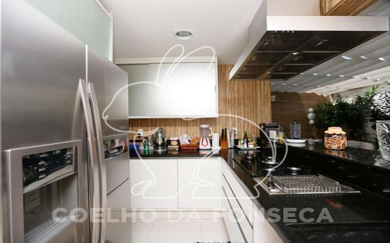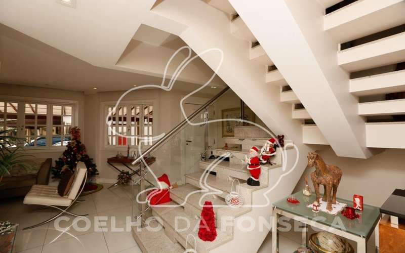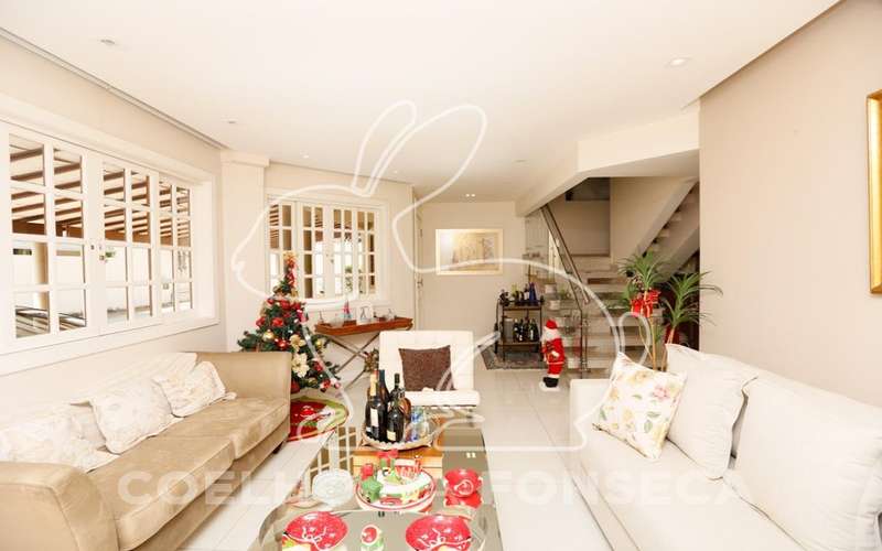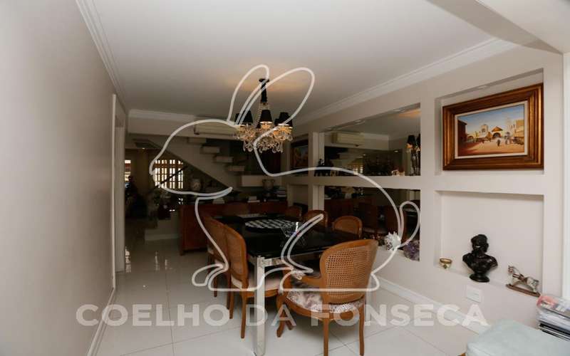 Excelente casa tríplex em condomínio. Toda personalizada. São 4 suítes (sendo 1 máster com closet e 1 que é utilizada como sala de TV), sala de estar com lareira. Transformou o jardim em uma área gourmet coberta, integrada a sala de jantar. Cozinha americana montada e equipada. Ar-condicionado em todos os dormitórios e na sala de jantar.