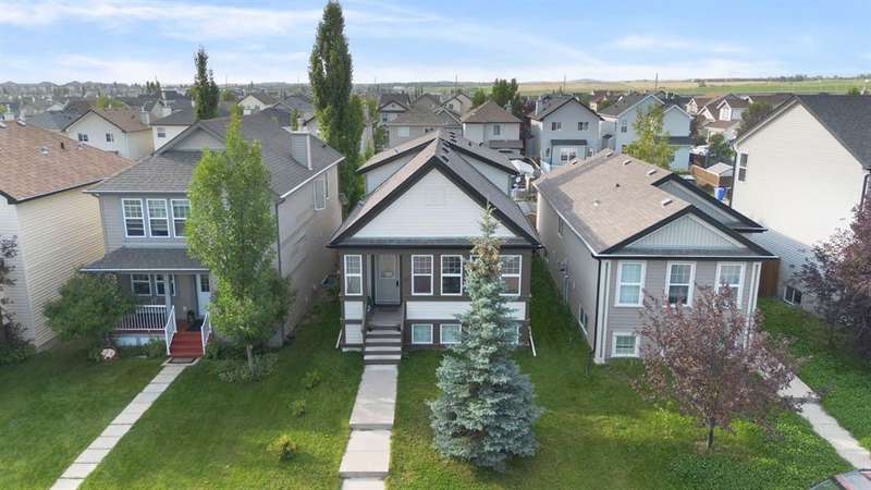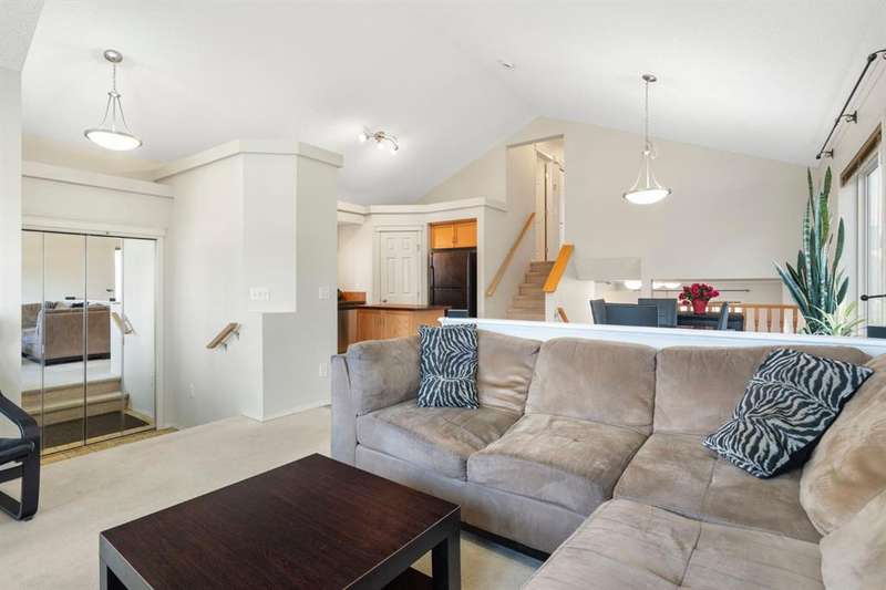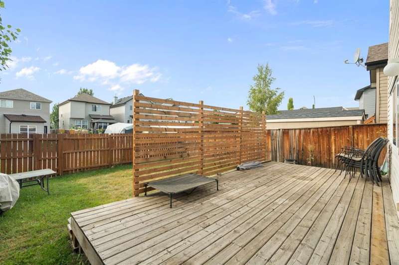 Welcome to this inviting 4-level split home in Evergreen, offering 1,548 sq ft of bright and functional living space- 3 bedrooms, 3 full bathrooms and a spacious south-facing backyard. Upon arrival you will delight in the charming front veranda and quaintness of the street. Upon entering the home on the main level, vaulted ceilings and large windows create a bright and airy living space that flows into the dining area and kitchen. The kitchen boasts warm oak cabinetry, a central island, and plenty of counter space for cooking and entertaining. Upstairs, the spacious primary suite features a 4-piece ensuite complete with a soaker tub and separate shower. This level is completed with a second bedroom and another 4 pce bathroom. The 3rd level walkout on grade is designed for relaxation, with large windows and a spacious family room anchored by a cozy gas fireplace, and features a third bedroom and an additional bathroom that provides privacy for guests or teenagers. Step outside to enjoy the full-length rear deck and a sunny south-facing backyard — the perfect spot for summer barbecues, gardening, or simply soaking up the sun. Year-round comfort is assured with central air conditioning and the furnace was just replaced. The 4th level is home to the laundry area and a huge crawl space which is ideal for storage while the remaining space is unspoiled and offers large windows and plenty of design options to suit your lifestyle. This Evergreen gem is ideally located within walking distance to schools, parks and peaceful pathways, and offers convenient access to transit and Stoney Trail for an easy commute. Combining space, comfort, and location, this home is a fantastic opportunity for families and professionals alike. Don't miss your chance to see this one today.