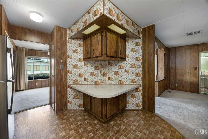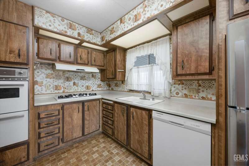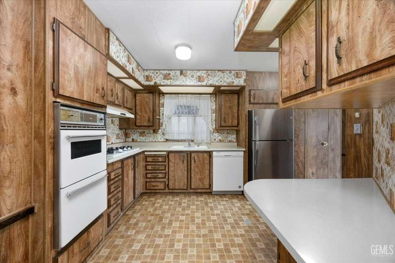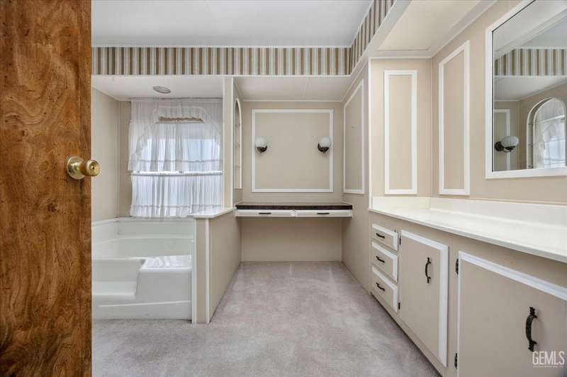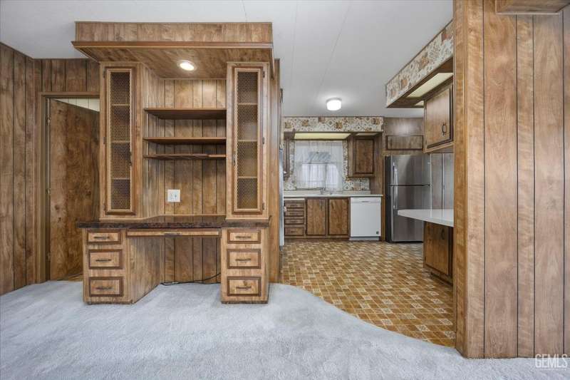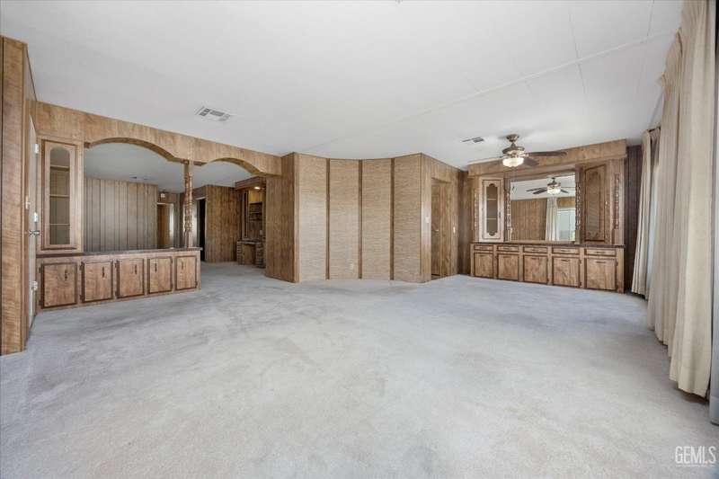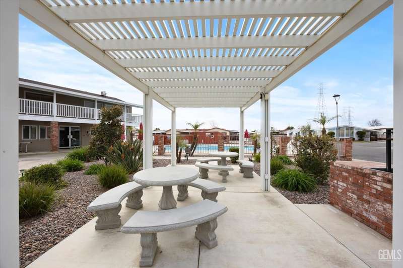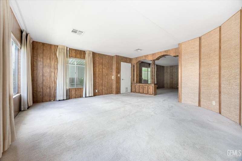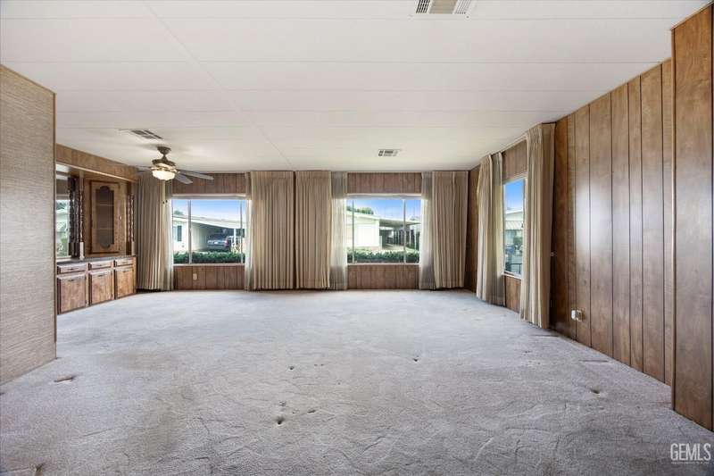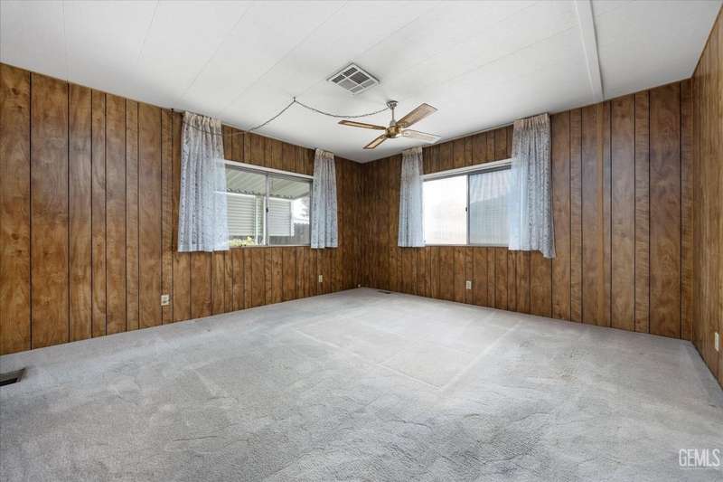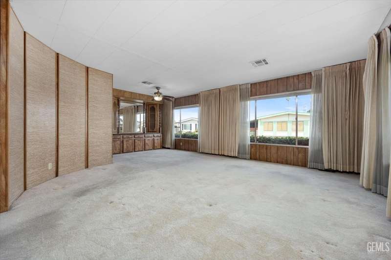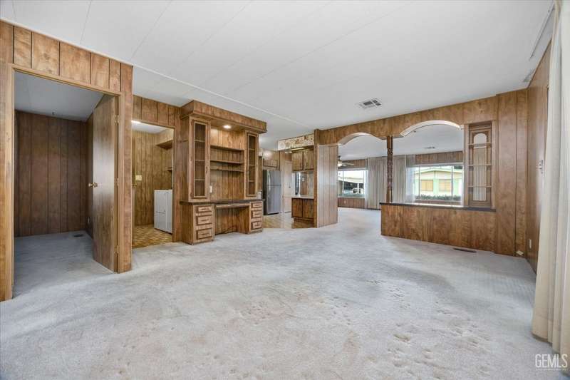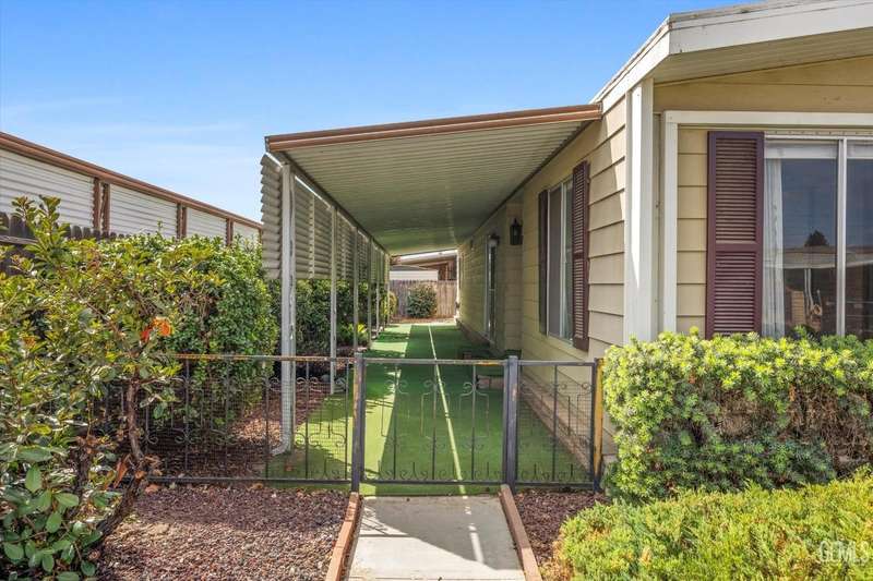 Royal Palms 55+ Mobile Estates is one of the most desired communities in Bakersfield. This spacious double-wide with 1440 sq ft offers a huge Great Room, 2 bedrooms and 2 baths. Enjoy an active lifestyle with the fantastic community amenities such as a pool, recreation center, golfing, a clubhouse and a Dog Park! The HVAC was just updated in 2024. Washing machine, dryer, and refrigerator included for your convenience. The monthly charge for space rent is approx. $795. Sold As-Is, Cash Only.