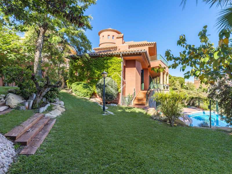 This exclusive property was designed and built by an architect for his own family. The property offers over 600m² of living spaces on a plot of 1,200m². South facing and with open spaces, the house benefits from great natural light, whilst the timeless design makes this elegant property a real gem in Cabo de las Huertas, Alicante. The house was designed with comfort and functionality in mind, taking full advantage of the panoramic views with terraces on every level. Distributed across 4 floors, the property benefits from plenty of outdoor space perfect for enjoying the enviable Mediterranean climate. We are welcomed into the property on the ground floor by an elegant reception hall leading to the spacious living room with high ceilings and a sitting room with a fireplace. To one side we find the library/TV room and entrance to the beautiful master bedroom, facing the sea, with a large walk-in wardrobe and full travertine marble bathroom. Also on the ground floor we find the the dining room which opens onto the outdoor dining terrace. The fully equipped kitchen has plenty of storage space plus a practical service entrance from the backyard. A laundry room completes this area of the property. A beautiful spiral staircase leads up to the second floor. The sleeping area offers 3 double bedrooms, all with en-suite bathrooms and sitting rooms. The third floor is a charming open bedroom with walk-in closet, bathroom and individual terrace. The basement level is designed to be the summer entertainment floor with a spacious summer salon, games room/playroom, indoor summer kitchen including traditional Valencian kitchen to cook paella or barbecue. Large sliding windows provide access to the pool area, terrace and beautiful garden. At the same level there is an authentic wine cellar, 2 guest bedrooms, a full bathroom, large storage room and 3-car garage. This property is a great opportunity for a large family looking for privacy and a comfort. A prestigious location, close to restaurants and a wide range of services guarantees residents an excellent quality of life. Contact us today for more information about this spectacular property.