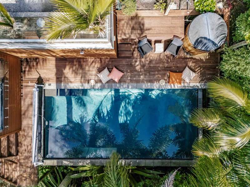 Private, Peaceful & Perfectly Positioned Tucked away at the end of a quiet private driveway and embraced by lush native bush, this serene split-level home offers an effortless coastal lifestyle in one of the Eastern Bays’ most sought-after locations. With subtle Bali-inspired design elements and a strong connection to nature, it feels like a peaceful retreat — yet it’s just minutes from the beach. Step inside to a warm, welcoming interior, soaring ceilings, and expansive windows invite the outdoors in. Sunlight filters through greenery, creating a calm, airy ambiance that shifts gently across the split-level layout — offering both flow and separation where you need it most. The kitchen is spacious and thoughtfully designed, ideal for everyday living and relaxed entertaining. It connects seamlessly to open-plan living and dining areas, which in turn spill out to north-facing decks — the perfect spot for your morning coffee, summer barbecues, or winding down to the sound of birdsong. With four bedrooms and three bathrooms, this home offers flexibility for families, guests, or working from home. The downstairs guest suite or media room opens directly to a sheltered outdoor area featuring a swimming pool and spa pool — perfect for kids, summer hangouts, or a quiet afternoon soak under the trees. More surprises with a soothing water feature, charming pond, and a private grassy area that’s ideal for pets or play. Surrounded by native bush, this peaceful haven blends comfort with nature at every turn. Upstairs, the master retreat delivers comfort and privacy, complete with a walk-in wardrobe and ensuite. Key Features: • Double internal-access garage plus additional off-street parking • Swimming pool & spa pool • Water feature & pond • Private outdoor area with grass – ideal for pets or children • Separate laundry and abundant storage throughout • Zoned for top-rated local schools • Walking distance to Madills Farm, coastal walkways, beaches, and cafés If you’re looking for a home that slows life down — a private, character-filled sanctuary where you can reconnect with nature and enjoy the rhythm of coastal living — this property is a must-see.