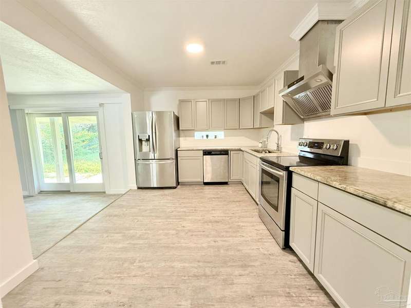 Charming 3-Bedroom Oasis with Modern Upgrades and Room to Breathe!** Discover this beautifully refreshed 3-bedroom, 2-bathroom home, blending modern style with everyday comfort. set on a generous half-acre lot, this property features, yard building and gardening house, lots of space and mature shade trees, creating a tranquil outdoor retreat where you can unwind and enjoy the serene surroundings. Step inside to find an inviting open-concept layout adorned with luxury vinyl plank flooring that flows seamlessly from room to room. The heart of the home, a stunning kitchen, boasts sleek granite countertops and high-end stainless steel appliances, making meal preparation a pleasure. This space effortlessly transitions to a spacious family room, ideal for entertaining friends or enjoying quality time with loved ones. Both bathrooms have been fully remodeled, showcasing elegant walk-in tile showers for a spa-like experience that will elevate your daily routine. Key upgrades, including a roof replaced in 2019, a brand-new HVAC system, and a new water heater, ensure peace of mind for years to come. Convenience is at your fingertips with a stackable washer and dryer set included, along with a two-car garage providing ample storage and parking solutions. This home is truly move-in ready, allowing you to settle in and start making memories right away! Please note that this charming property may require flood insurance, ensuring you're well-prepared for the natural beauty surrounding your new home. Don't miss out on the chance to experience this delightful blend of comfort and style-schedule your tour today and see for yourself why this home is perfect for you!