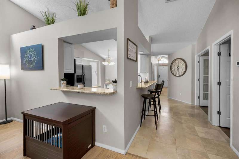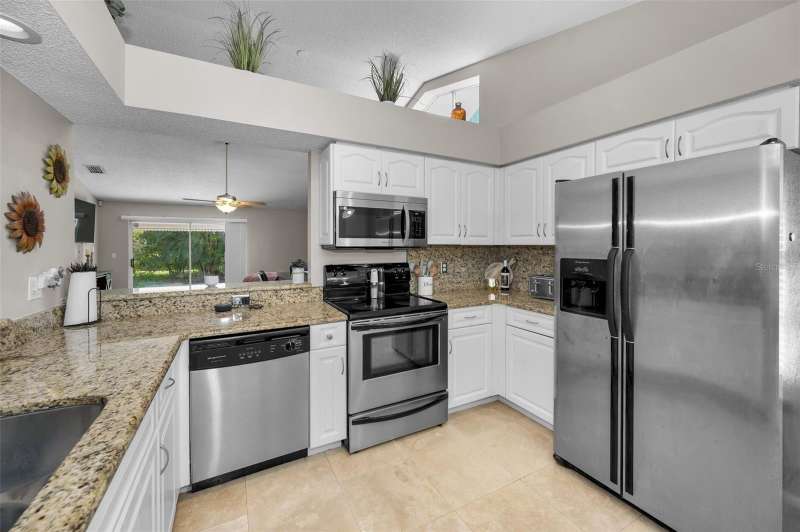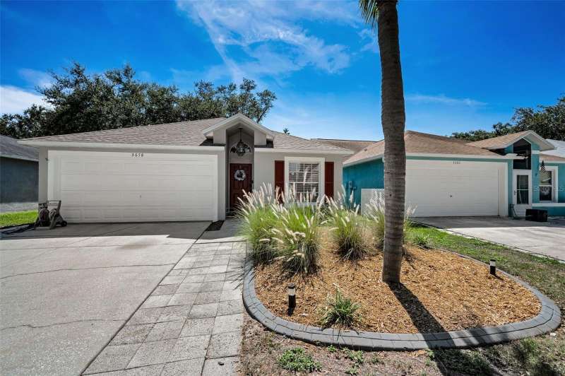 Have you been searching for an attractive and comfortable home in a great location? Looking for a place with plenty of space and all the right features? This welcoming 4-bedroom, 2-bathroom home has what you’re after. With a spacious and open living and dining area, there’s lots of room to relax with family or friends. The well-appointed kitchen and dinette area boasts wood cabinetry, granite countertops and stainless steel appliances as well as a breakfast bar for more casual dining & entertaining. Natural light fills the home, and the high ceilings add to the roomy feel. The desirable floorplan offers a 3-way split for the 4 bedrooms, making it convenient for accommodating guests as well as family. Travertine tile floors are located in the kitchen, entry and bathrooms and wood laminate flooring is located in all bedrooms, living room and dining room. The two-car garage offers plenty of room for your vehicles or recreational toys, with additional storage in the attic above the garage. This home is located within the well-maintained, centrally located Palm Harbor community of Countryside Palms. You’ll be close to shopping, dining, and can easily get to local beaches (6.8 miles to Honeymoon Island State Park and Beach) or either of two airports --Tampa International (15 miles) or St. Pete/Clearwater Airport (11.8 miles). Located in a non-flood zone - High and Dry! Additionally, the Fred Marquis Pinellas Trail is close by for biking, jogging or skating! Ready for you to make this great house your home? Come see it for yourself!