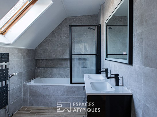 The ground floor is completed by two bedrooms, a shower room, a laundry room and benefits from independent access from the outside, giving these rooms great flexibility of layout. This part of the house could easily be transformed into an independent space, perfect for a professional or rental activity.