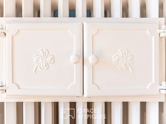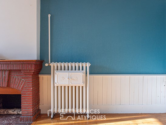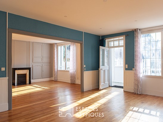 The entrance opens onto a double living room bathed in light, where old parquet floors, a marble fireplace and period radiators create an atmosphere of timeless charm.