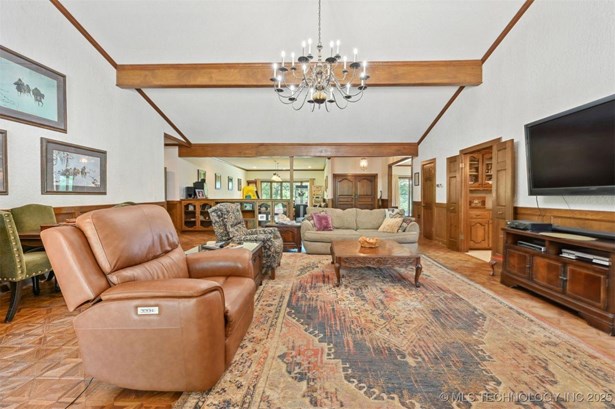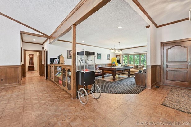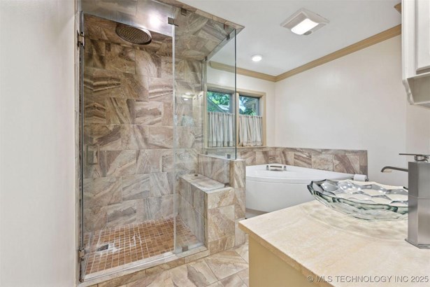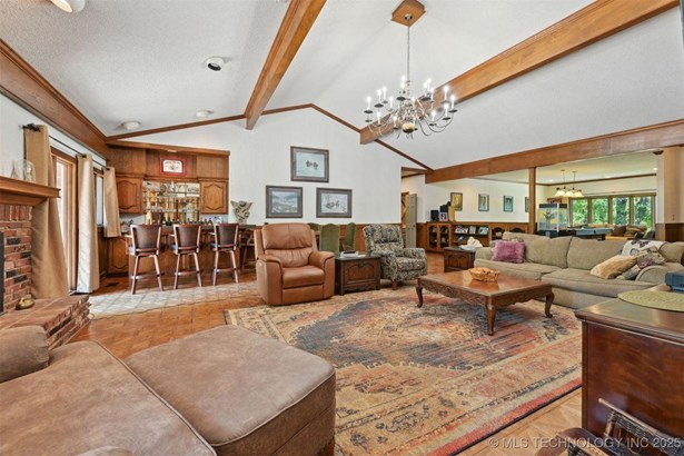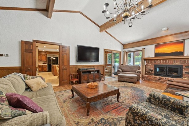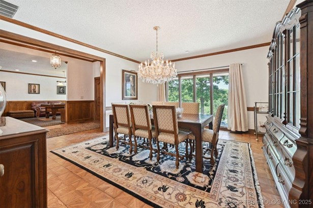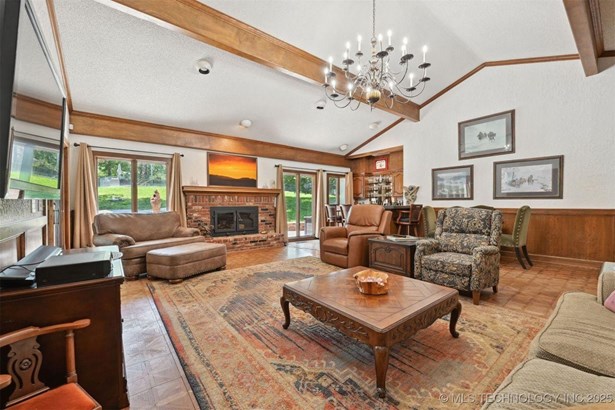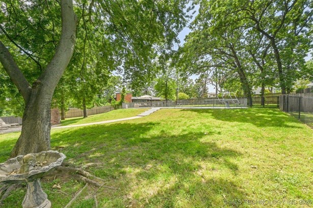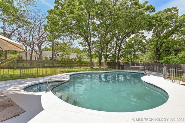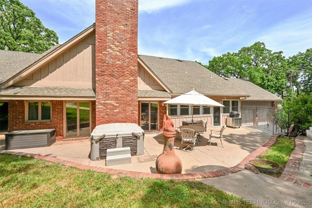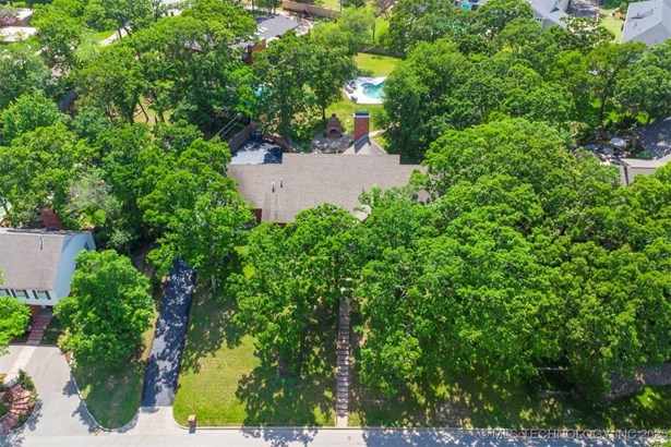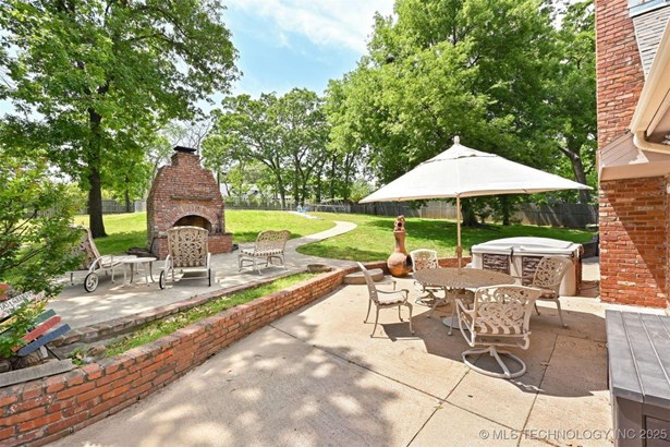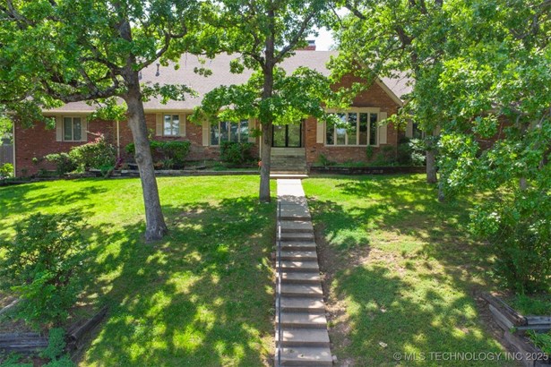 One of Tulsa's most desirable neighborhoods, this Timberlane Hills home is a golf cart ride away from Southern Hills. Majestic .71 acre treed lot (m/l) with beautiful curb appeal. Full brick, one level home with outdoor fireplace and salt water pool. Home has an open plan with vaulted ceilings and an abundance of natural light. Living area features fireplace and entertaining wet bar. Oversized kitchen has large granite island, full pantry and laundry room with service side door. Florida room has extra powder bath and overlooks back patio and outdoor fireplace. Diving pool is situated privately on lot and ideal enjoyment and sunning. Primary ensuite has dual vanities, updated shower and separate bath. Two additional bedrooms with pullman bath and generous closets. Three car garage with rear access and staircase to unfinished area not included in square footage and ideal for internal expansion. This home has a wonderful presence on a very quiet street. Close to St. Francis Hospital, Holland Hall, with easy access to all expressways.