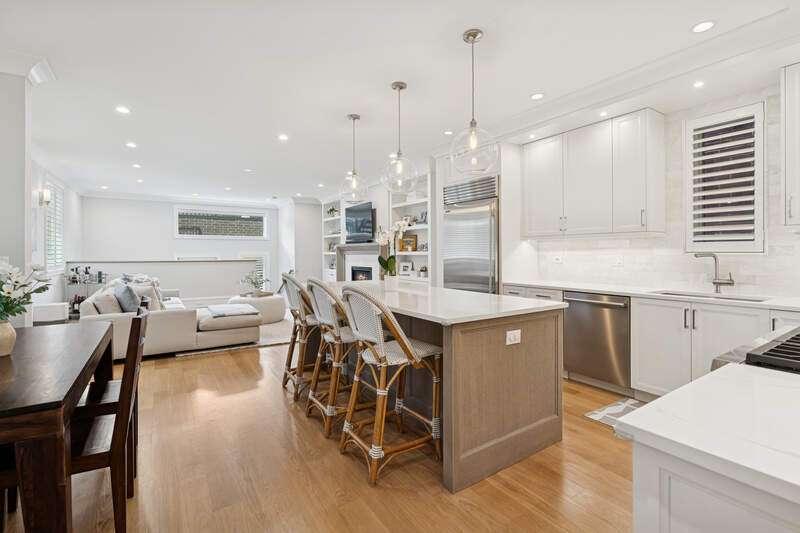 If you are looking for new construction but don't want to wait, this newly built in 2022, 4 bedroom duplex down in Nettelhorst School District is it! The unit is sprawling, near 3000 square feet 4 bedroom, 3.1 bath condo that lives like a single family with 3 private outdoor spaces includes a Huge private Roof Deck with custom built pergola over a 3 car garage, a private brick paver patio/backyard area plus a covered deck off the front living room. You'll enjoy Luxury amenities abound including a true chef's kitchen with professional grade appliances like Wolf/Subzero, custom cabinetry, quartz counter tops plus enormous entertaining island with overhang for barstools, custom lighting, incredible professionally organized walk-in pantry & an eat-in breakfast area that all opens into the large back family room. Natural light pours in the back room where you'll enjoy a gorgeous built-in media system, integrated fireplace, and steps down to a mudroom area to access your back patio and garage. Further down to the home's lower level, you'll find full radiant Heated floors with the coveted layout of 4 Bedrooms on the same level, full size side-by-side laundry & 3 Full Spa inspired bathrooms with Grohe fixtures, marble, quartz and custom cabinetry. The luxurious primary suite offers multiple organized closets, custom window treatments, and the ensuite bath that features steam shower + separate soaking tub + dual sink vanity. Throughout the home you'll find 5" wide plank White Oak flooring, custom crown/base millwork, Sound Attenuation technology including concrete between unit floors, high efficiency HVAC/tankless water heater. Bonus - and enormous crawl storage space on lower level for seasonal decoration, suit cases OR could be a darling play space! 1 Garage Parking space Included! Come see for yourself what elevated living in Prime Lakeview location looks like - on a quiet 1 way street all steps to Broadway shops and restaurants, Halsted, Clark/Wrigley.