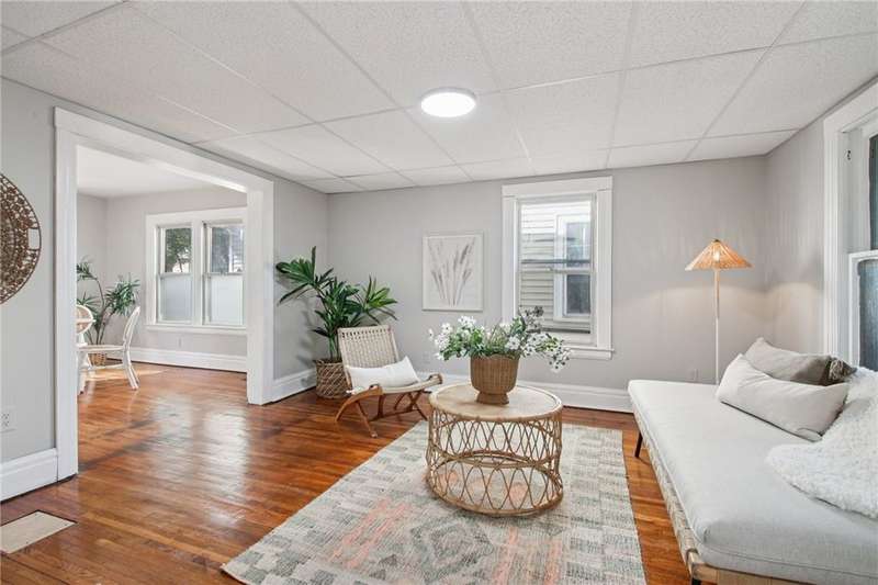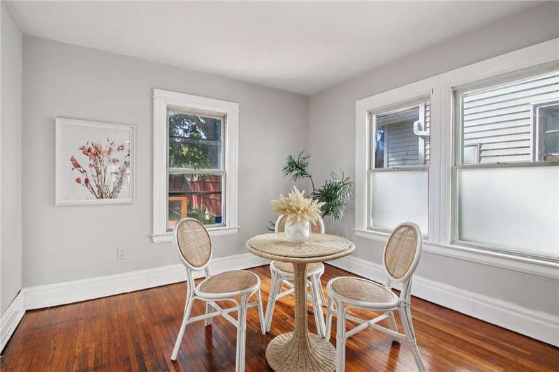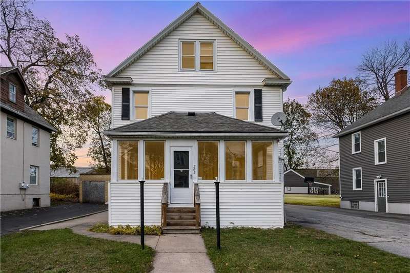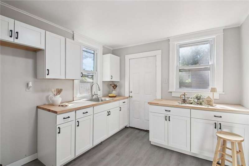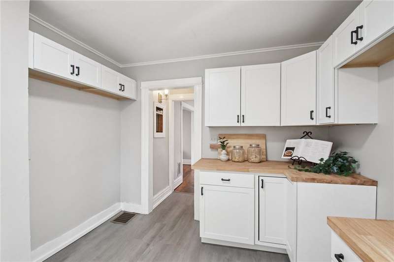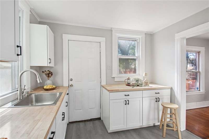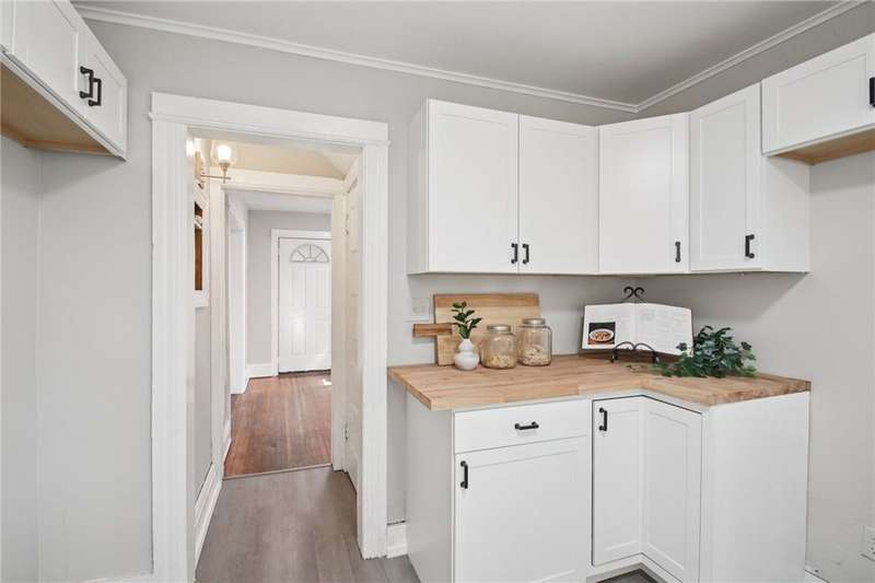 Thoughtful updates and fresh finishes--This home has plenty to offer. The second floor features 3 bedrooms and a remodeled full bath, while the main level offers a comfortable flow with a living room and dining room showcasing refinished hardwood floors. The newly remodeled kitchen stands out with new cabinets, butcher block counters, and durable vinyl flooring. A freshly painted enclosed front porch adds extra living space, while the backyard deck, also freshly painted, is perfect for outdoor enjoyment. Additional highlights include a walk-up attic for storage or future potential, freshly painted rooms, and new light fixtures in several areas.This home blends classic character with modern updates?ready for its next owner to enjoy.