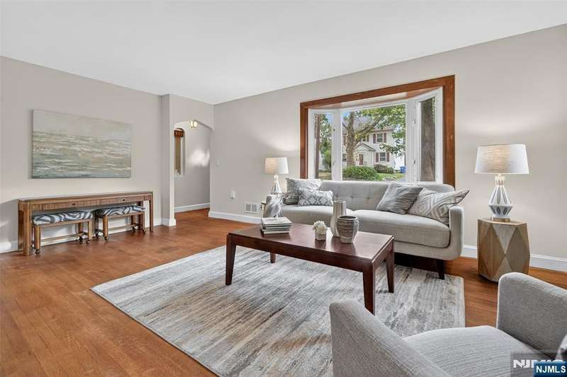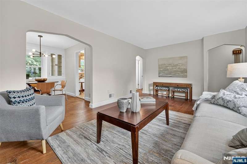 A quintessential brick Cape Cod complete with breezeway between house and garage in a lovely residential neighborhood setting. Upon entering you'll find a traditional layout with sweet Tudor arch openings between rooms and hallways. The built in dining room sideboard is a great place to tuck away linens and serving pieces along with a space to show off your prized possessions/collections. Tasteful upgrades to kitchen and baths are already made so tackle the hardwoods and you're move-in ready. There's a little surprise room upstairs that you'll use for whatever your imagination dreams up. The backyard paver patio is a spacious spot for your outdoor furniture, grill and/or firepit to sit and enjoy your peaceful space in any season. Storage galore in your full basement, upstairs eves and of course, the garage. Super close to lots of shopping and green spaces. Knickerbocker Country Club is just a few blocks away. NYC commuter? - 5 miles to the GWB and 11 miles to the Tappan Zee. Train and bus stations are a hop, skip and a jump away - That was easy!