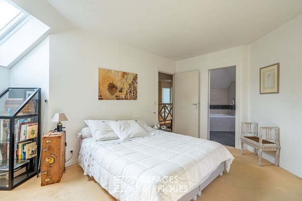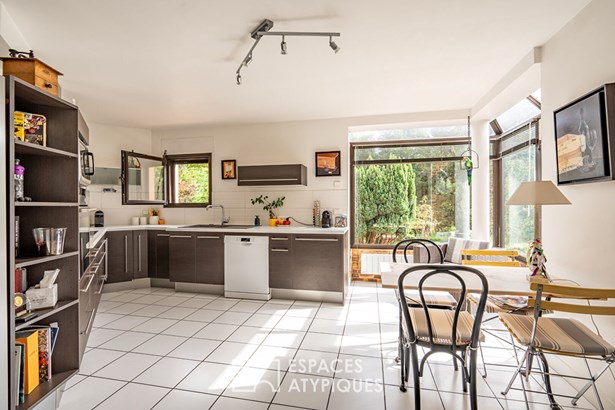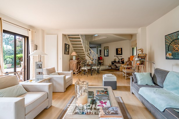 This superb architect-designed house, with a floor area of ??196 m2 and a living space of 170.5 m2, tastefully designed and built to a high standard, is located on the heights of Villennes-sur-Seine, nestled in a large, enclosed, landscaped garden with no overlooked views.