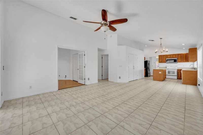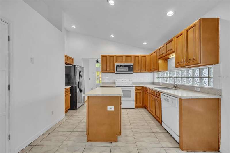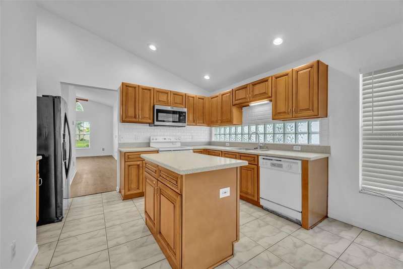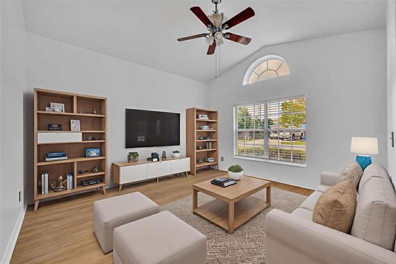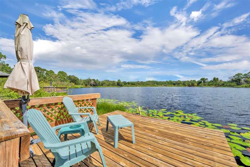 One or more photo(s) has been virtually staged. This 4 bedroom, 2 bath pool home sits on the shores of Lake Telfer, a peaceful lake perfect for paddleboarding, kayaking, fishing, and watching sunrises. Inside you’ll find soaring ceilings, formal dining and living areas with vinyl flooring and abundant natural light. The kitchen features an island, subway tile backsplash, pantry, and eat-in space overlooking the family room with high ceilings, tile flooring and lake views. The split floor plan offers a private primary suite with a walk-in closet, dual vanities, walk-in shower, jetted tub, and private water closet, while three additional bedrooms share a hall bath. Sliding doors open from the family room to the screened pool and patio, overlooking the large backyard that includes a pergola, open patio, fire pit area, and private dock—an ideal spot to relax or watch rocket launches from Kennedy Space Center. The house is complete with an indoor laundry room with a sink and a two-car garage. Additional upgrades include a fresh interior paint (2025) and newer AC and water heater (2022). This home is located in a neighborhood with no HOA, zoned for top rated Arbor Ridge Elementary, Glenridge Middle, and Winter Park High schools, quick access to 417 and just minutes from Downtown Winter Park. Call today to schedule your private showing!