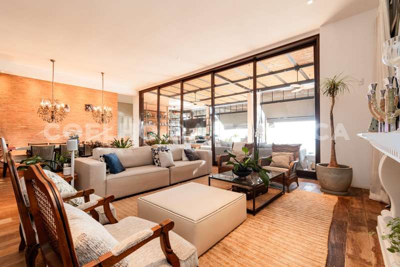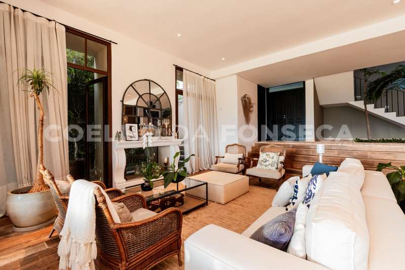 Casa no condomínio RESIDENCIAL TAMBORÉ 10, com 646m² área construída, 4 dormitório(s), 4 suíte(s), 5 vaga(s), 6 banheiro(s), piscina, escritório, depósito, mobiliado (a), com renda , ar condicionado, dep. de empregados, reformado (a), varanda, pé direito duplo.