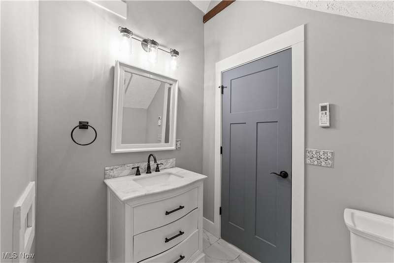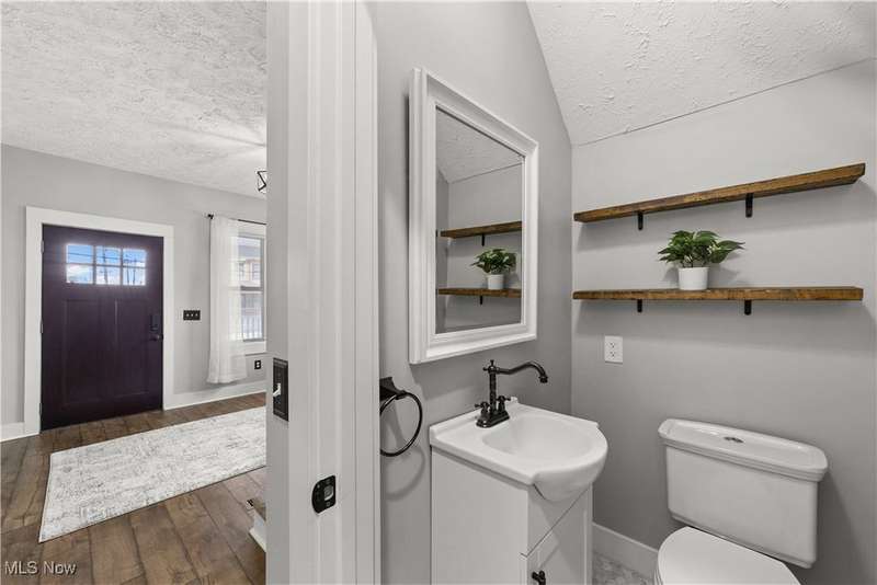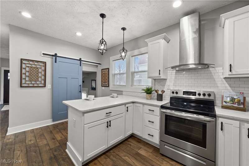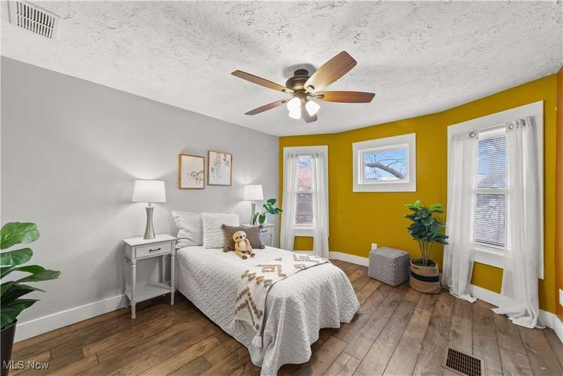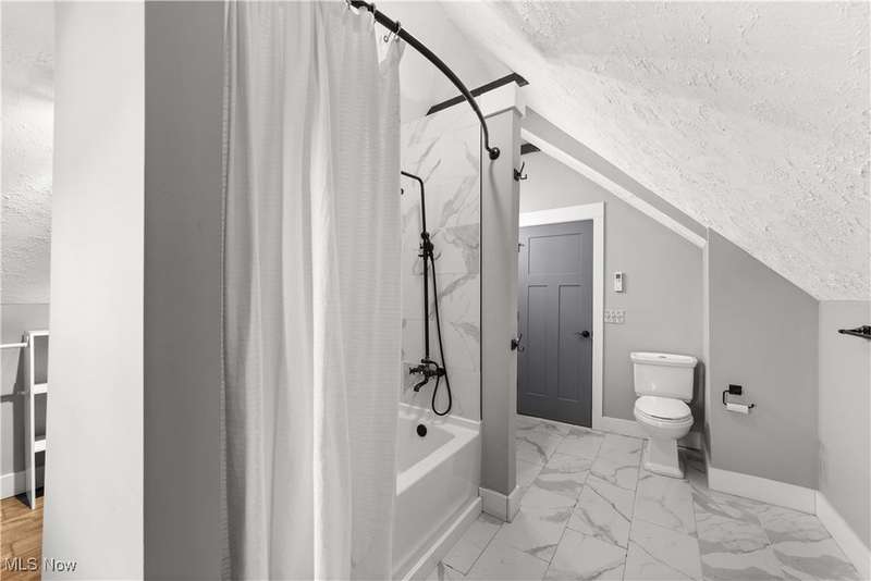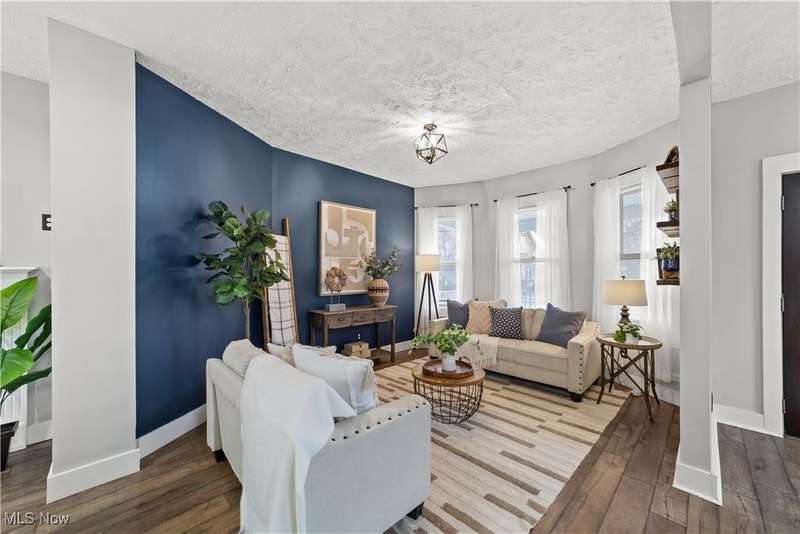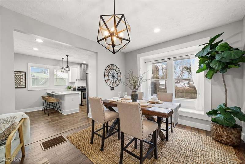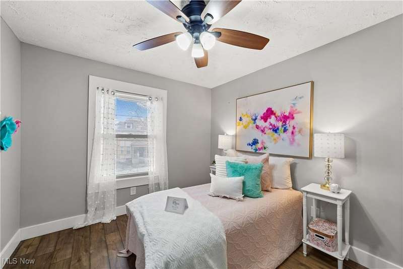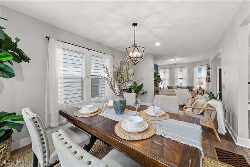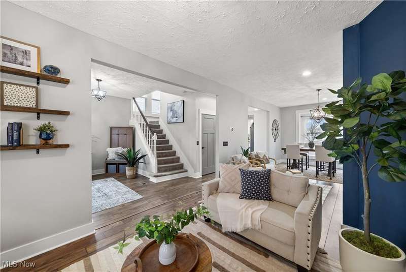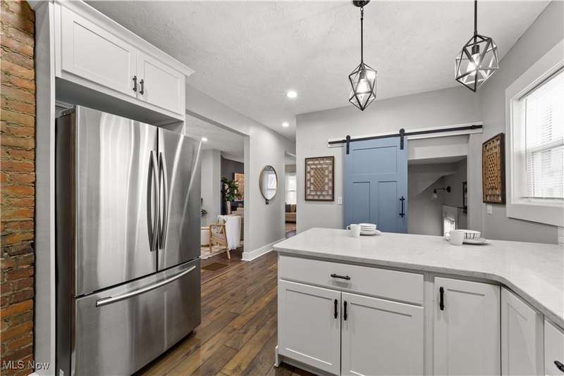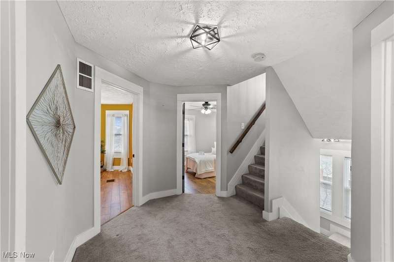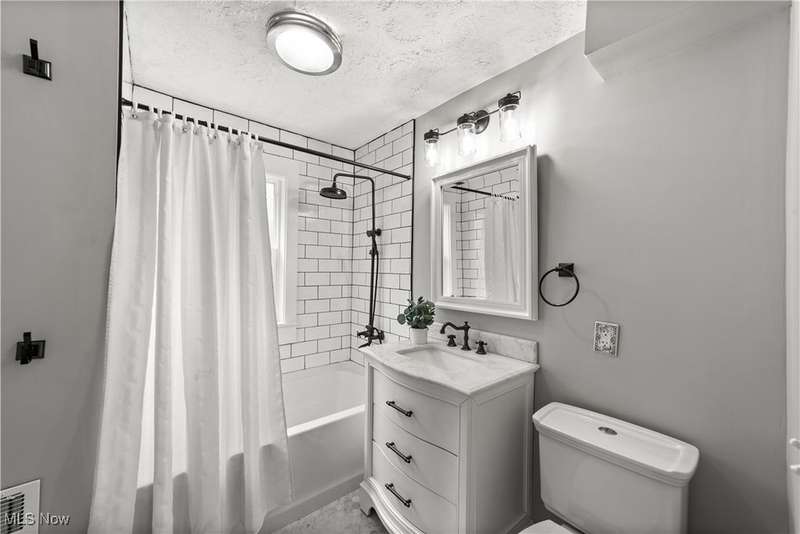Discover this beautifully renovated colonial in the heart of Gordon Square! Fully gutted and renovated in 2018, the home has additional recent upgrades, including a new top-of-the-line 1-car garage (2022), mini-split AC in the third-floor primary suite (2022), a new water heater (2024), and a fully-fenced in backyard ready for an aspiring DIY gardener with abundant raised beds. The large front porch invites you into a bright sitting room that flows into the cozy living and dining rooms, boasting North and South-facing windows, handcrafted wood shelving, and a mantle with an electric fireplace. The custom eat-in kitchen impresses with exposed brick, white shaker cabinets, Quartz countertops, a subway tile backsplash, stainless steel appliances, and Antique Hickory flooring. A charming half bath with honeycomb tile completes the main level. The second floor includes three bedrooms, a laundry room, and a full bath with oversized subway tile and marble counters. The third-floor primary suite stuns with vaulted ceilings, wood beams, exposed brick, and a luxurious bath featuring porcelain tile, a tub surround, and a spacious walk-in closet. Every mechanical system has been updated, including plumbing, electrical, insulation, furnace, and central AC. Enjoy coffee on the front porch or enjoy the fenced backyard garden oasis. With a new concrete driveway and garage, maintenance is worry-free. Just minutes from Gordon Square Arts District and Edgewater Park, this home offers prime access to shopping, dining, and entertainment. Fall in love today!