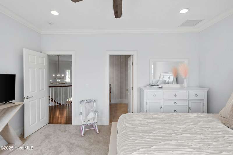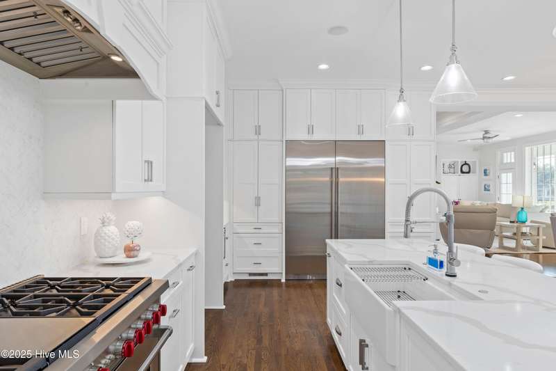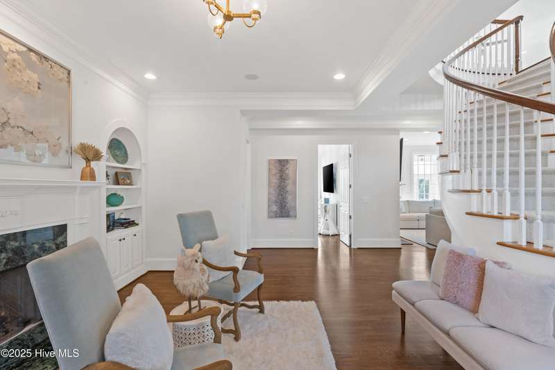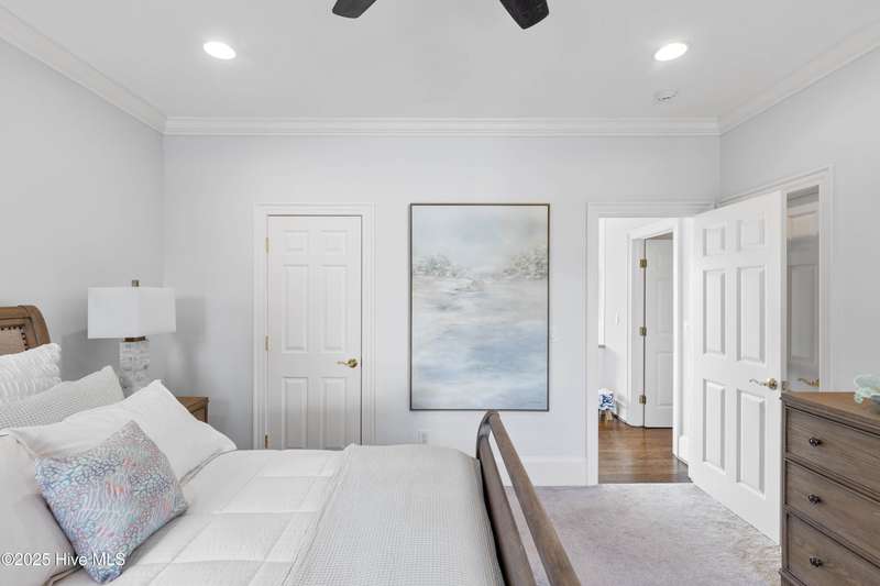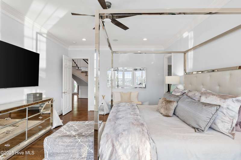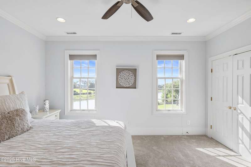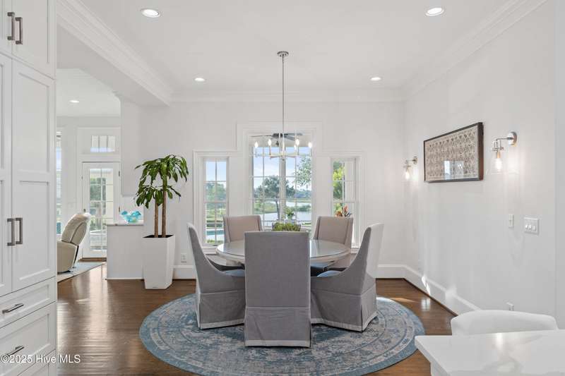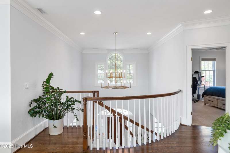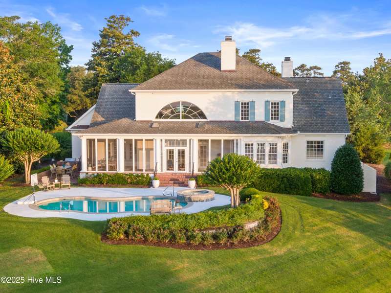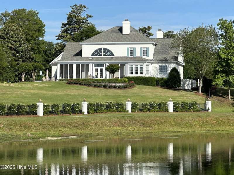 Welcome to 2220 Moreland Drive on the stunning Landfall Lake with breathtaking views. As you pull up to this stately home you will notice the great curb appeal, large driveway, and 3 car garage. As you step inside, your eyes will be drawn straight to the gorgeous view of the lake and even views of the Intracoastal waterway. The open foyer has a formal dining room to the right and a living room to the left complete with a gas fireplace. The family room is center in the house with a wet bar, gas fireplace, and leads to a lovely screened-in porch. The updated kitchen is light and bright with quartz countertops, ceiling-height cabinets, and a Wolfe range. There are two powder rooms downstairs plus a spacious laundry room. The master bedroom is also on the first floor positioned perfectly to wake up to heavenly views. Over the garage is a large bonus room that would be make a great fifth bedroom as it has a huge ensuite bathroom, the bonus room is currently being used as a home gym. There are 3 additional bedrooms upstairs plus a loft/flex space which would make a great playroom, media room, or office. One of the best features of this property is the high elevation of this almost one acre lot complete with a pool, spa, patio, and built-in grilling area just off the kitchen. You can start or end your day with a walk around the idyllic Landfall Lake which is right in your backyard. Whether you want to relax or entertain, this house checks all the boxes.