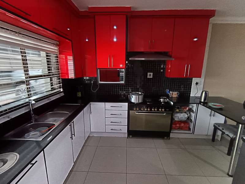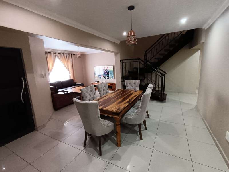 Discover your dream home in Geelhoutpark! This beautiful double-storey house offers the perfect blend of space and comfort. The main bedroom, located upstairs, features an en-suite bathroom, a walk-in closet, and a private balcony with a stunning view. You’ll also enjoy a cozy study, perfect for working from home. Downstairs, you’ll find three more spacious bedrooms, a full bathroom, a modern kitchen, and a welcoming open-plan dining and lounge area, ideal for family gatherings. With three garages and a double carport, there’s plenty of space for your vehicles and extra storage. This home offers the perfect setting for families looking for comfort, style, and convenience. Don’t miss out on this gem!