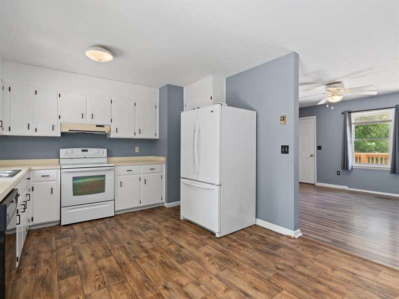 Discover this charming, move-in-ready 1,025 sqft, 3-bedroom, 1.5-bath brick ranch, perfectly situated minutes from 23/74 and Waynesville Commons. Freshly updated, this home boasts a new HVAC system, laminate flooring throughout, and vibrant exterior paint. Enjoy outdoor living on expansive new front and rear decks, ideal for entertaining or relaxing. The durable metal roof ensures low maintenance, while the level yard offers space for gardening or play. Additional features include an above-ground basement for extra storage or potential expansion, outbuildings for hobbies or tools, and reliable city water/sewer. The open interior layout maximizes space, with modern fixtures and a bright, welcoming atmosphere. Perfect for first-time buyers or downsizers, this affordable home blends convenience and comfort in a prime location near Waynesville's shops, dining, and community charm. Don't miss out?schedule a showing today!
