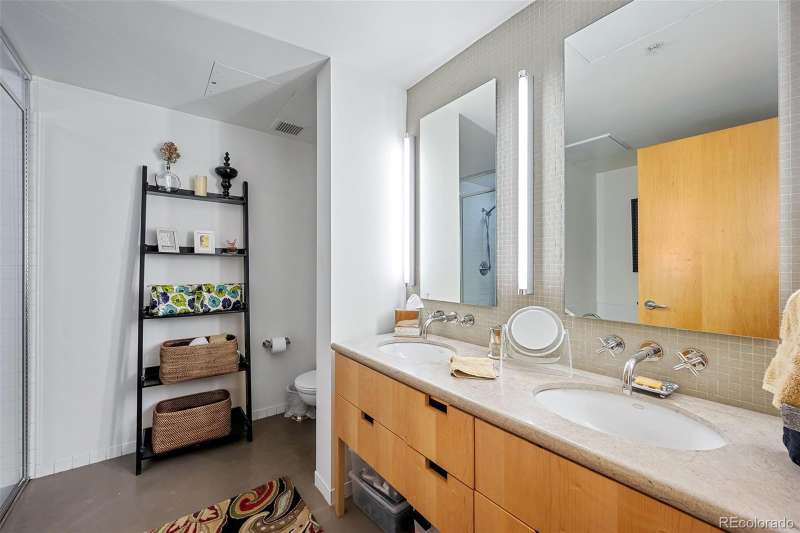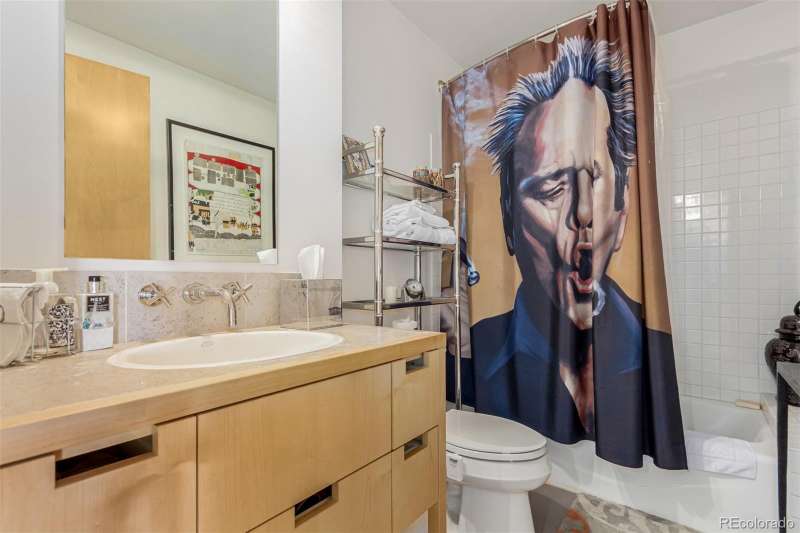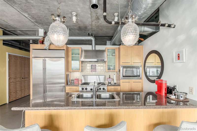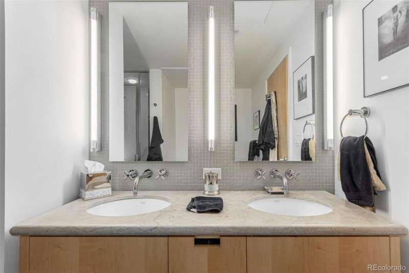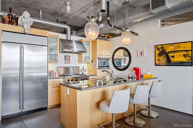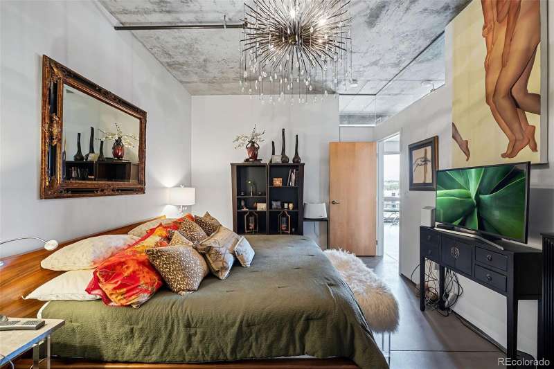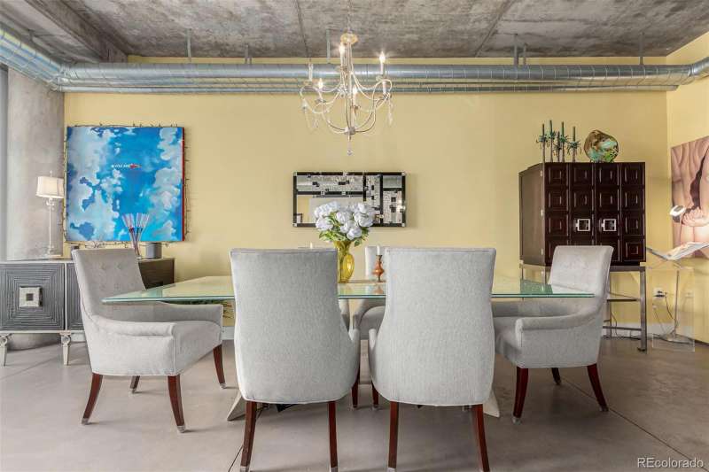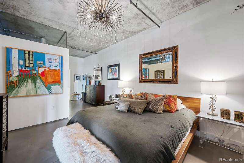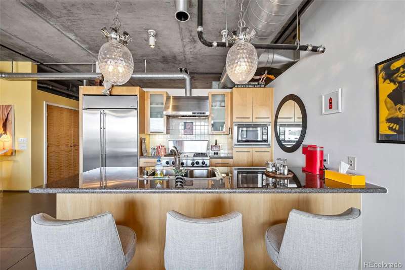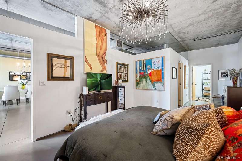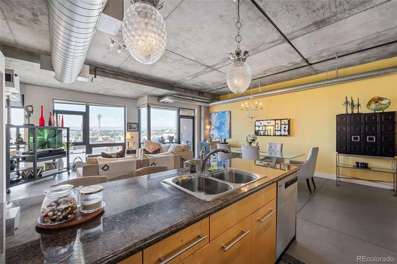 Luxury and convenience converge seamlessly in this exceptional loft residence - a true sanctuary in the heart of Denver's premier downtown neighborhood Riverfront Park. Discover coveted southwestern mountain views from the comfort of your expansive living areas, which are ideal for both relaxing and entertaining guests. The eat-in kitchen is a chef's delight featuring a center island and upgraded penthouse quality stainless steel appliances. Ten-foot ceilings frame expansive walls, providing the perfect backdrop for showcasing your personal art collection. The spacious primary bedroom suite offers a luxurious 5-piece bath with jetted soaking tub, while the second bedroom, with a convenient built-in murphy bed, easily adapts to an office/study area. Custom closet built-ins throughout provide great, organized storage. Includes 1 parking space in secure underground garage. The building has recently installed a new ButterflyMX secure, remote, entry system and Riverfront Park has a 24/7 security team. This exquisite loft offers a prime location in Riverfront Park adjacent to Commons Park and miles of walking and biking trails.