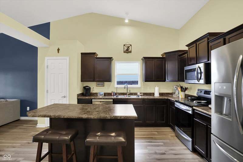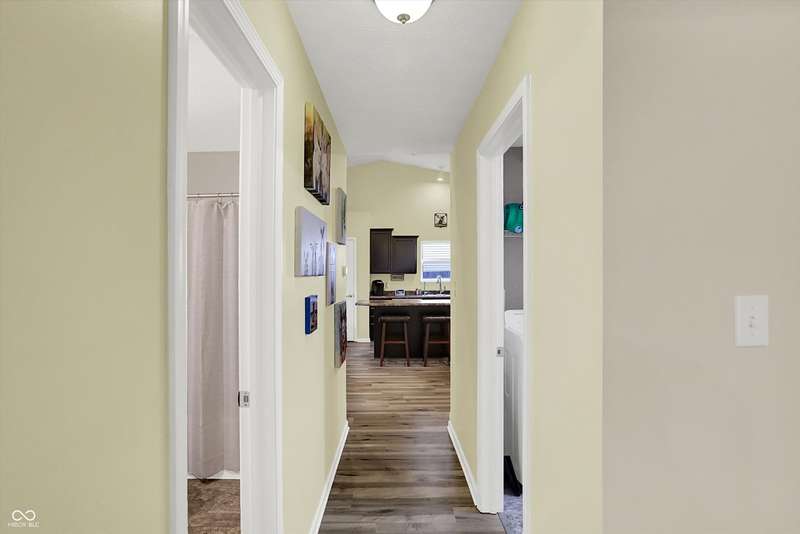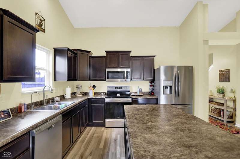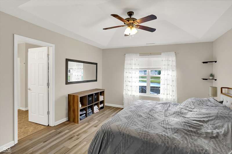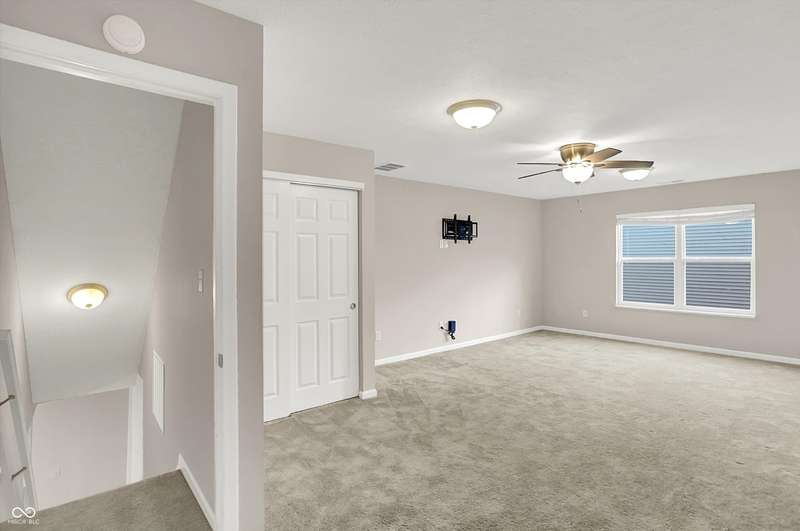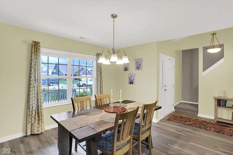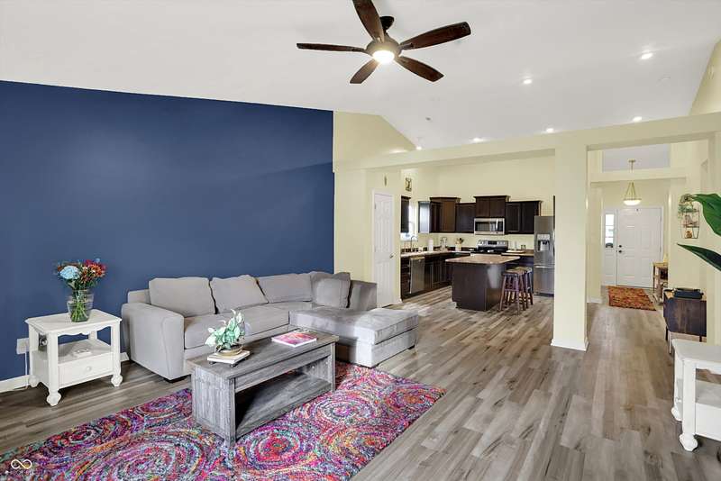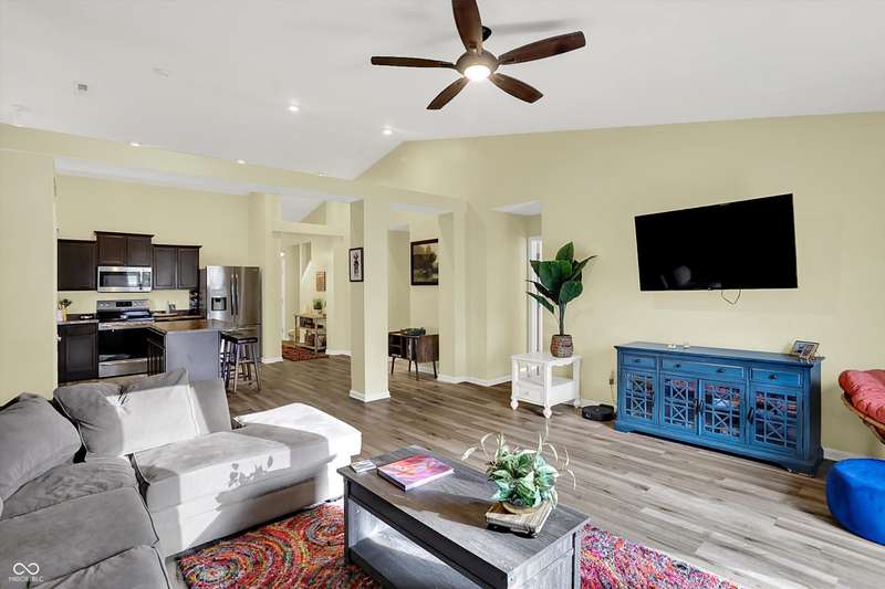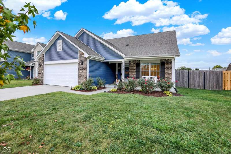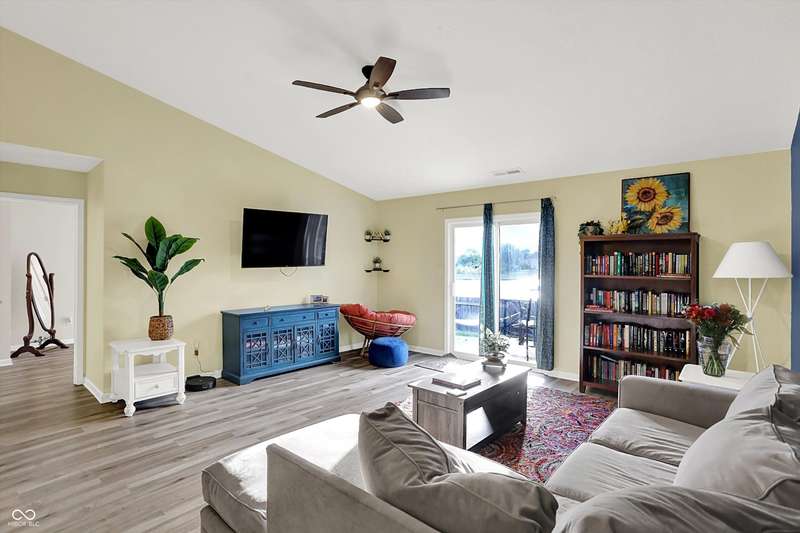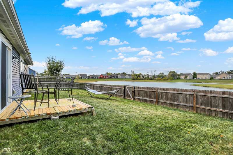 Welcome to this exceptional home, situated in the highly desirable Wyndstone neighborhood within charming Fortville, served by 4-Star Mt. Vernon Schools. Nearly new, open-concept ranch features a pond front lot and includes three bedrooms with the potential for a fourth upstairs, two full bathrooms, a formal dining room, and an expansive upstairs bonus room. The residence offers newer LVP flooring throughout the first floor, upgraded sink faucets, a new shower head in the primary suite, fresh paint in all rooms except the loft, and numerous mechanical updates including a replaced freon line to the AC, new garbage disposal, improved outdoor faucets, recently replaced smoke detectors, new toilets, and updated decking on the deck. Additional amenities include a quaint front porch with swing, neutral decor, vaulted ceilings, generous storage space, and a fully fenced backyard. You will love the prime location featuring neighborhood walking trails, playground, proximity to shopping, restaurants, and convenient highway access. Enjoy the vibrant local scene with Fortville's downtown shops and dining nearby.