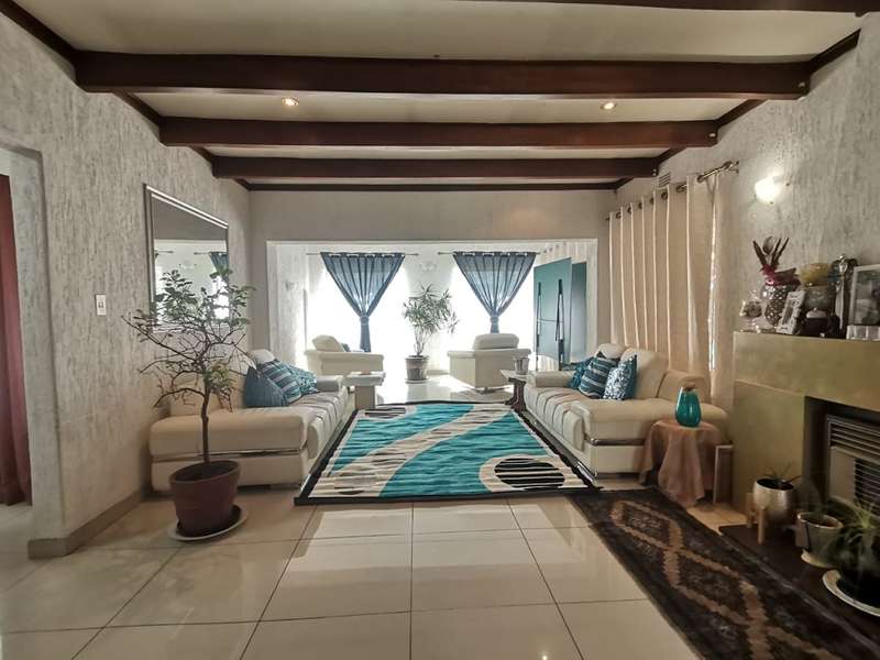 This home welcomes you into the spacious entrance hall leading to the kitchen flowing to the dining room, the family lounge with a fireplace and to the spacious private lounge overlooking the very spacious well developed garden with a swimming pool. The kitchen features a hob, oven, extractor fan, cherry wood cupboards, and wooden countertops. A separate scullery adds to the practicality, making family living easy and enjoyable. There are 4 spacious bedrooms with built-in cupboards, ensuring plenty of storage for the whole family and 3 bathrooms – including 2 en-suites – plus a guest toilet for added convenience and privacy. A private study or office with a rock wall feature creates an inspiring workspace, while the entertainment room with a built-in bar and braai is ideal for hosting family and friends. Complete with a double garage, tandem garage, and staff quarters with a shower and toilet for added convenience. Situated close to highways, amenities and lots more at your doorstep....