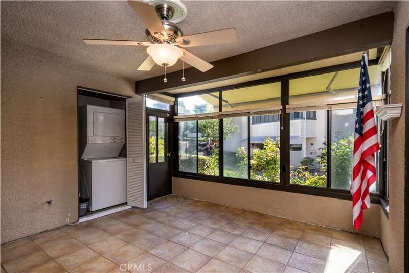 GROUND LEVEL, END UNIT, very SPACIOUS LIVING ROOM, which leads to a BRIGHT AND AIRY SUN ROOM, TWO BEDROOMS which includes a MASTER SUITE, TWO BATH. Mirrored Closet Doors in bedrooms. BEAUTIFUL WOOD CABINETS in Kitchen. Stackable washer and dryer in Sun Room. This prestigious community has a 24/7 GUARDED SECURITY. How about a game of PICKLE BALL? Enjoy the swimming pool, spa, tennis courts, putting green, fitness center, library, walking trails, and clubhouse. Fun monthly events on the calendar for socializing. The grounds are green and lush and beautifully landscaped. Located near the LA MIRADA PERFORMING ARTS CENTER, shopping and restaurants. Are you ready to ENJOY, EXERCISE, RELAX AND MEET NEW FRIENDS AT THE LANDMARK LA MIRADA?