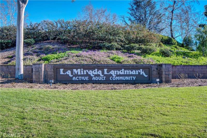 GROUND LEVEL, WITH BRIGHT AND AIRY SUN ROOM at LANDMARK 55+ SENIOR COMMUNITY. Very SPACIOUS LIVING ROOM, TWO BEDROOMS which includes a MASTER SUITE, TWO BATH. Mirrored Closet Doors in bedrooms. BEAUTIFUL WOOD CABINETS in Kitchen. Stackable washer and dryer in Sun Room. This prestigious community has a 24/7 GUARDED SECURITY. How about a game of PICKLE BALL? Enjoy the swimming pool, spa, tennis courts, putting green, fitness center, library, walking trails, and clubhouse. Fun monthly events on the calendar for socializing. The grounds are green and lush and beautifully landscaped. Located near the LA MIRADA PERFORMING ARTS CENTER, LA MIRADA GOLF COURSE, shopping and restaurants. Are you ready to ENJOY, EXERCISE, RELAX AND MEET NEW FRIENDS AT THE LANDMARK LA MIRADA?