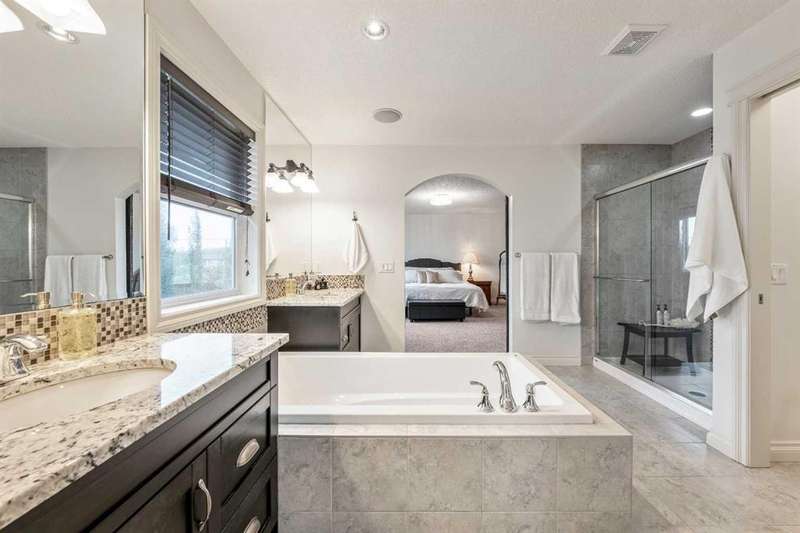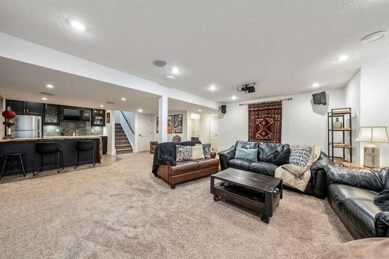 ***OPEN HOUSE SATURDAY OCTOBER 18TH 12PM-2PM AND SUNDAY OCTOBER 19TH 2PM-4PM *** Welcome Home! This immaculate Estate Home is located in Rockford Estates, on a quiet and family-friendly street in the sought after community of Rocky Ridge! On the market for the first time, this 2013 build boasts over 3400 sq ft of living space. Stepping into this elegant home, you are greeted with a grand foyer that's spacious and open to above, lots of space to greet your guests. There is beautiful hand-scraped, engineered, wide-plank hardwood flooring throughout the main floor. Wander through the den and into the upscale gourmet kitchen featuring a large island with a raised bar to have your guests sit at, granite countertops, tons of cupboard and counter space, upgraded stainless steel appliances and a designer Wolf 6 burner gas stove! If you love cooking you will love this kitchen! With 9' ceilings, the open floor plan incorporates a dining room and living room off of the kitchen, great for hosting dinner parties! The main floor is capped off with a large mud room that incorporates the laundry room and a powder room. Head upstairs to the bonus room with large windows that lets all the natural light in. Walk down the hall to the spacious primary bedroom, with more large windows and tons of space - your own personal oasis! The ensuite has two vanities, tub, shower and 2 walk-in closets. There are 2 more good sized bedrooms and a 4 piece bathroom that finishes off the upper floor. The basement has a great spot to watch movies on the large projector with the family. No reason to go upstairs with the amazing wet bar - make your popcorn and have your drinks at the amazing custom wood countertop. Host your buddies for the superbowl!! There is also a large bedroom and a 4 piece bathroom on this level. Finally, step out into the amazing backyard, with large deck and hot tub - great for BBQ'ing and having friends and family over! Lots of mature trees makes it private and the large pie-shaped lot gives you tons of space to play with the kids or let the dog lounge. Kick up your feet and make some smores around the fire pit, in this quiet and serene yard! If you like being outside this backyard is for you! The YMCA, schools, shopping and restaurants are all just steps away. This beautiful neighbourhood has lots of bike paths, walking trails and is a short hop to the mountains. You don't want to miss out on this one! Welcome Home!