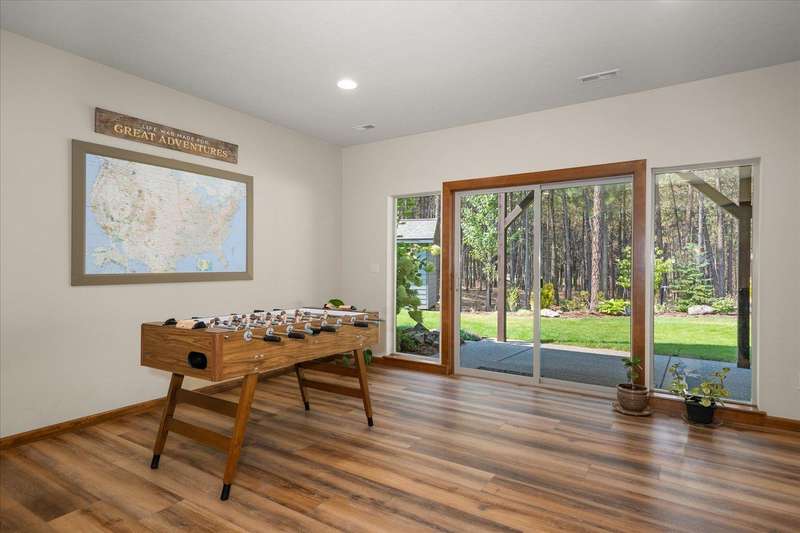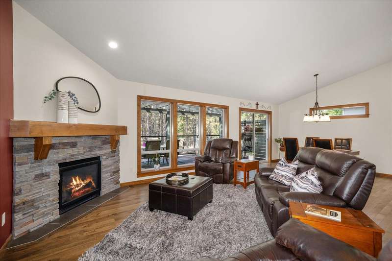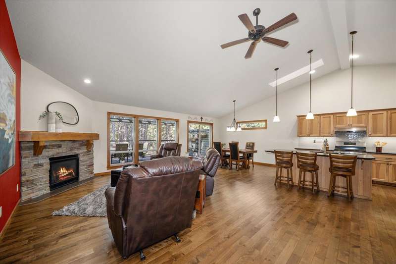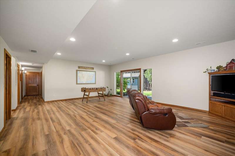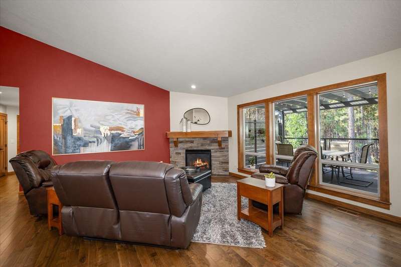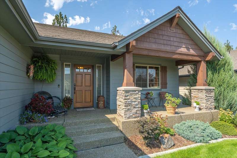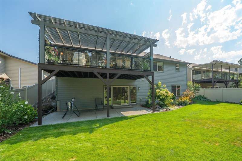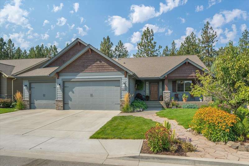 Enjoy main floor living in this stunning 6 bedroom, 3 bathroom daylight rancher with a 3-car garage nestled in Eagle Ridge. Step inside to vaulted ceilings, hardwood floors, and an open concept living area anchored by a cozy fireplace. The kitchen shines with custom cabinetry, hard-surface counters, stainless appliances, gas range, and an island with eat bar. Main floor living is complete with laundry, full bath, 3 bedrooms including a spacious primary suite with walk-in closet, garden tub, double vanity. The daylight walkout basement boasts high ceilings, a spacious family room, full bath with dual sinks, 3 additional bedrooms including one oversized room ideal for a man cave or second family room. Enjoy the amazing, covered deck and patio overlooking a private, landscaped backyard perfect for entertaining. Conveniently located near trails, parks and community charm with easy access to shopping and downtown Spokane.