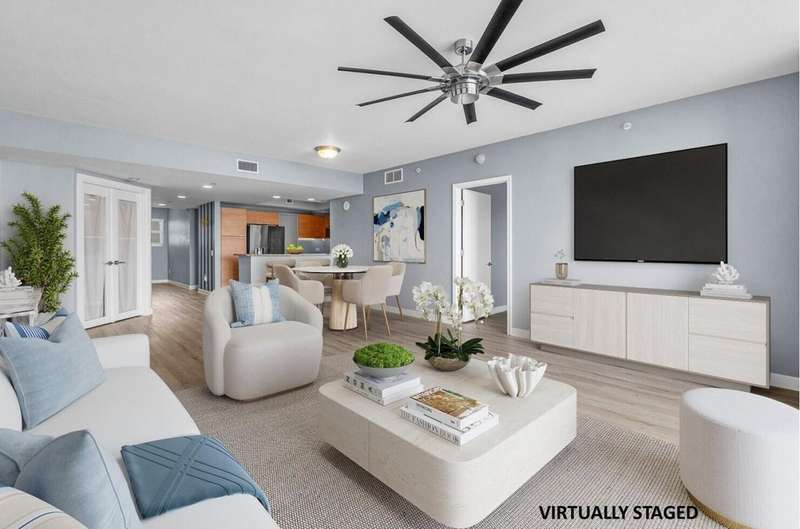 6th floor 2BR + bonus room/den, 2BA condo with east/sunrise views overlooking the Intracoastal. LVT floors throughout (except primary bath), glass enclosed primary shower, a/c under 2 years old, built-ins in all closets. Impact glass, semi-private elevator access. Open concept, neutral colors, split floor plan. Spacious owners suite w/his & her walk-in closets. Primary bath w/double vanity, jetted bath, water closet. Assigned garage parking (close to elevator!) & climate-controlled storage unit. 24/7 manned gate, valet, NEWLY renovated rooftop oasis w/pool, spa, BBQ areas, tennis, pickelball, & bocce. Clubhouse, billiard room & fitness center, walking path w/gazebo, Adjacent marina w/dry docks, minutes to the ocean, no fixed bridges. Pet friendly.