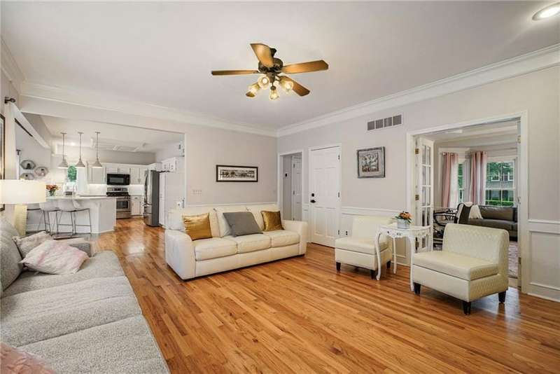 Welcome Home! This charming property offers a generous amount of square footage and an open floor plan. The main living areas include a formal dining room, a sitting room currently being used as an office, a gorgeous kitchen with a cozy informal dining space, a laundry room, a half bath, and an expansive living room perfect for relaxing with your family. Perfect-sized bedrooms upstairs, along with a full bath and a spacious primary bedroom with a private deck and an ensuite bathroom. Finished basement for an additional family room or playroom. The backyard is a beautiful retreat with a concrete patio for entertaining guests, raised garden beds, and a tree house your kids will love. Come view this stunning home ready for your family.