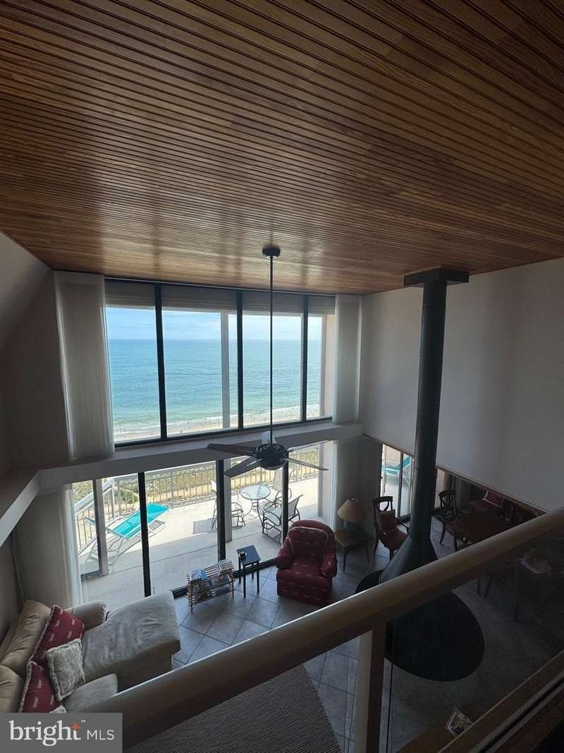 Welcome to the pinnacle of coastal luxury living. This breathtaking two-story penthouse beach condo offers sweeping ocean views, unmatched elegance, and the perfect blend of comfort and sophistication. Fully furnished with designer touches throughout, this rare gem is move-in ready for those who demand the best in beachfront living. Spanning two spacious levels, this 4-bedroom, 3-bathroom residence features granite countertops in both the kitchen and master bath, where you'll also find a luxurious jacuzzi tub for ultimate relaxation. A stylish loft area adds flexibility for a home office or additional guest space. The show-stopping two-story living room is an entertainer's dream, showcasing a full wall of windows facing the ocean, flooding the space with natural light and offering unobstructed, breathtaking views. On chilly days, cozy up by the wood-burning fireplace-a rare find in coastal properties and a focal point of living space. It also features built-in bookcases, ideal for displaying your favorite reads or coastal decor. Four private balconies invite you to soak in the sea breeze and panoramic views of the ocean and bay, or unwind in the living room featuring a wood-burning fireplace-a rare find in coastal properties. Each bedroom and the living room is equipped with ceiling fans, ensuring year-round comfort. Practical upgrades include a new washer and dryer, a 1-year-old water heater, and a 2021 outdoor A/C unit, offering peace of mind and modern efficiency. There's also a large outdoor storage closet for your beach gear, plus two under-building reserved parking spaces for added convenience. Double hurricane blinds on the oceanside provide extra security, and the building's amenities include a sparkling pool just steps from the sand. Located in a highly desirable area, this penthouse offers unbeatable walkability to shops, restaurants, cafes, and local attractions. Whether you're looking to grab coffee, enjoy fresh seafood, or explore vibrant coastal activities, everything you need is just a short stroll away. This exceptional residence is the perfect primary home, vacation escape, or luxury investment-where every detail reflects high-end coastal living.