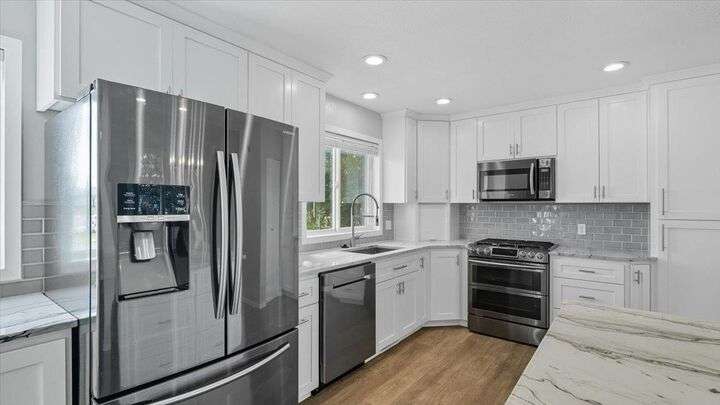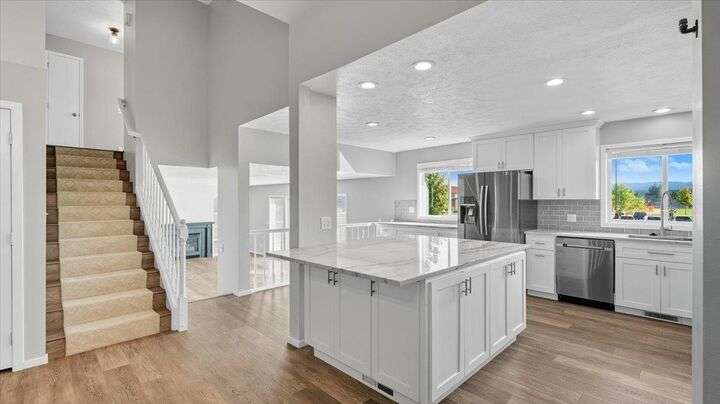 You must check out this, priced to sell, beautifully updated 5 bedroom (with one being a bedroom/office combo on main floor), 3 bath, 2514 sf 4-level home with a large fenced backyard on a almost 1/2 acre cul-de-sac lot. This home boasts quartzite countertops, newer stainless appliances, luxurious vinyl plank flooring, massive concrete patio and living space with gazebo and gas hook up, incredible large play structure, dog run with their own doggie door to house, and RV parking. This home is also located within close to Chester, Horizon, University HS, and Browns Park with a convenient gate in the backyard. This is a must see to truly appreciate all it has to offer.