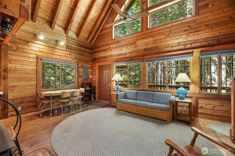 Escape to the mountains in true cabin style in this Lindal Cedar home located on a quiet private road tucked away in the heart of Snoqualmie Pass. Surrounded by trees, mountains and with Coal Creek running through the property, you will be living the mountain life to its fullest. Get cozy and dry the ski gear by the wood stove after a long day of skiing/ski touring. Spend your summers relaxing at your own private riverfront listening to Coal Creek flow by. 704 sq/ft of additional space on the lower level for gear, storage, shop, or convert to finished square footage? Two tax parcels, one great price.