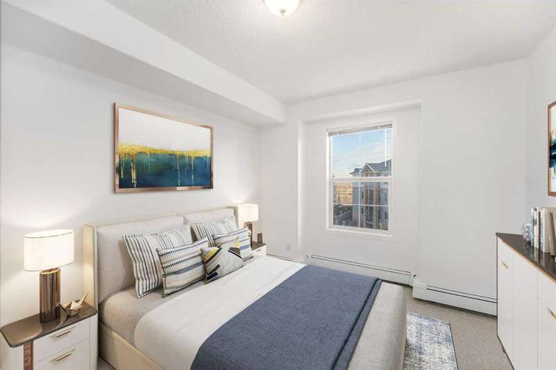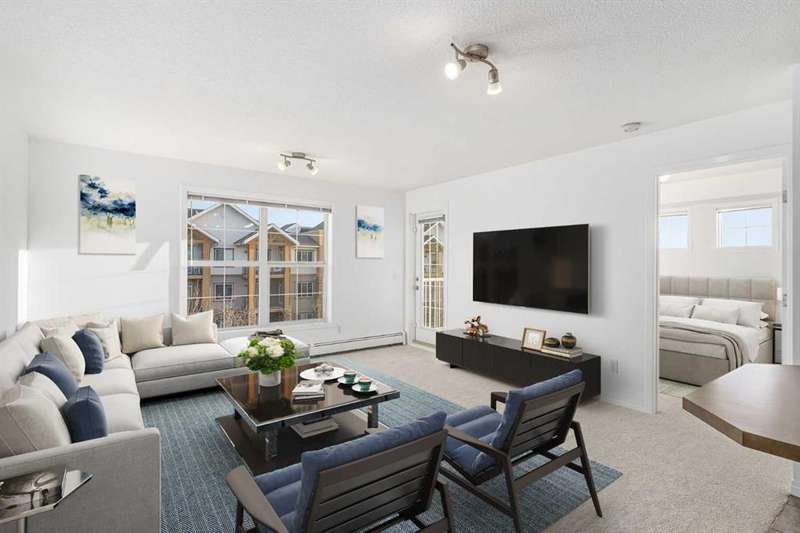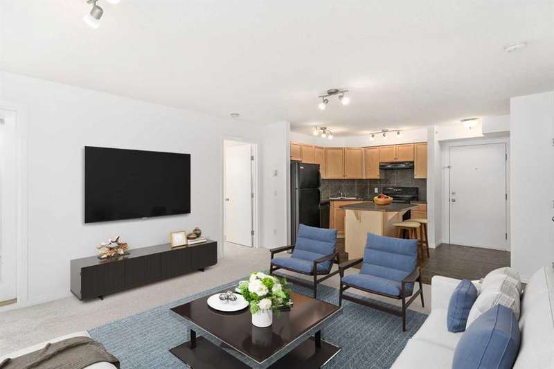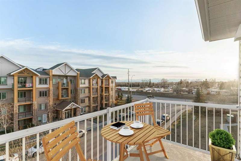 Explore an incredible opportunity to invest in an immaculate condo building across the expansive Elliston Park. This top floor, corner unit is SW facing with 2 bedrooms and 2 full bathrooms. Completely updated with lush new carpet and fresh paint throughout, indulge in a modern, low-maintenance lifestyle at an affordable cost. The functional kitchen includes well-maintained maple cabinetry and sleek black appliances, with complementing dark tile backsplash. A characteristically open layout and large island cultivate the perfect space for your culinary endeavours and dinner parties, seamlessly transitioning into the well-illuminated living area that separates the bedrooms for optimal privacy. The primary retreat features a spacious walk-in closet and a private 4-piece ensuite with built-in storage shelving. A second large bedroom and accompanying 4-piece bathroom add to the unit’s versatility; making it an attractive option for families, roommates, hosting guests or even converting to a dedicated home office or gym. In-suite laundry and heated underground parking are additional perks that encompasses both comfort and convenience. This is by far the best unit in the entire building-- with sweeping mountain views off of the huge private balcony, fully equipped with its own gas line for summer BBQs and basking in the fresh air. This home is ideally situated amongst attractive retail and amenities, and a short walking distance to the playground, dog park and scenic picnic tables set around the pond. With additional favourable proximity to schools, the Max Purple Transit Line, and a quick drive to the extensive offerings found at East Hills Shopping Centre. Enjoy this bright, peaceful and move-in ready unit for incredible value!