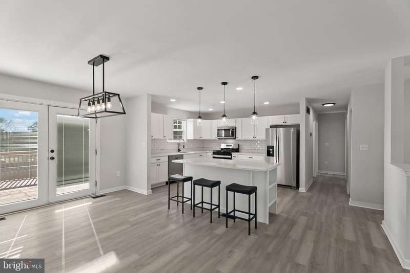 Welcome Home! Come tour this stunning fully renovated split-foyer home located in the desirable Baltimore Highlands neighborhood. Featuring 4 bedrooms and 3 full bathrooms, this residence has been completely updated from top to bottom, offering the perfect blend of modern comfort and timeless style. The open-concept main level creates an airy and inviting atmosphere, full of natural light. The living area flows seamlessly into the dining space, and the main level also boasts a gorgeous, fully renovated kitchen, showcasing a large island with bar-stool seating, new cabinets providing ample storage, stunning Quartz countertops, and brand-new Whirlpool stainless-steel appliances. Each of the three full bathrooms feature contemporary black finishes, adding a designer touch throughout. Enjoy all-new flooring, light fixtures, beautiful paint, and brand-new recessed lighting throughout the entire home, creating a bright and modern feel in every room. Double doors off the dining room allow you to step outside to a huge, private fenced backyard complete with a large deck perfect for summer barbecues and entertaining. Double doors off the lower level open into the manicured yard, revealing a fire pit ideal for cozy fall nights and a large shed offering extra storage space. The home is also equipped with new solar panels (installed 2024) providing exceptional energy efficiency and long-term savings and a new roof (2024). Nestled in the friendly Baltimore Highlands community, you'll enjoy convenient access to shopping, dining, parks, and major commuter routes. This home truly has it all-fully renovated, move-in ready, and designed for comfort, style, and energy efficiency. Across the street from wonderful Baltimore Highlands Elementary School and one mile away from beautiful Hillcrest Park. Don't miss your chance to call it home- schedule your tour today! PRICE DROP, MOTIVATED SELLER