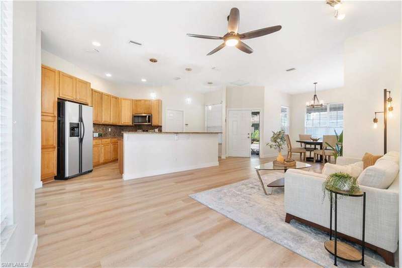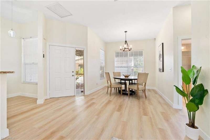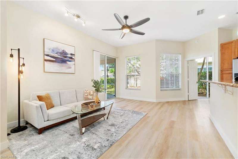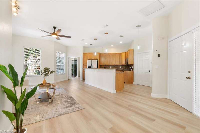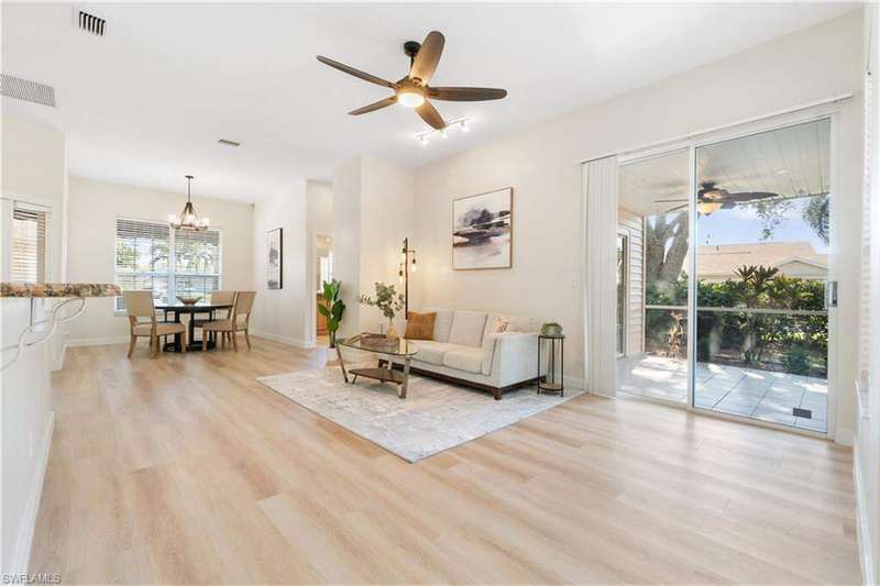 BEST-PRICED single-family home in one of the most desirable zip codes of world-famous Naples, Florida at the time of listing!! This recently remodeled 2-bedroom, 2-bath corner lot home in the sought-after Lakeside Development of Naples offers modern updates and a PRIME LOCATION. The home features new luxury vinyl floors, new light fixtures, and a new master bathroom with contemporary finishes. An open-concept living space and new appliances in the kitchen make this property move-in ready. Enjoy the screened lanai and private patio surrounded by lush landscaping for added privacy. Located just a short walk to community amenities, including pickleball, bocce ball, tennis, basketball, and a fishing pier. Relax at one of the two community pools (one lap pool), soak in the spa, or take advantage of the two-story clubhouse with a fitness center, sauna, game room, and more. The community also offers a 1.5-mile walking path, five clay tennis courts, shuffleboard, and a tot playground. Conveniently close to Naples' best beaches, marinas, restaurants, shopping, and entertainment. Just 4 miles to Mercato and 4.5 miles to Vanderbilt Beach. Low HOA fees make this home even more appealing.