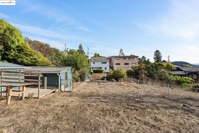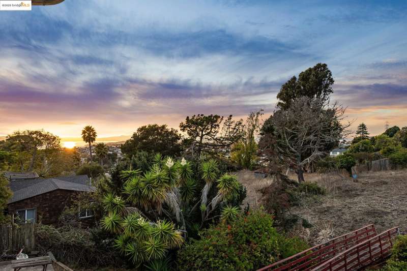 Possibilities as endless as the views! This unique property has so much to offer! Set on an extra-deep, quarter-acre+ lot (per public record), the main house features a 2-bed/1-bath unit upstairs and a 1-bed/1-bath unit below.* An adjacent structure includes two rooms, a full bath, shared laundry, and a workshop.* Cross a charming bridge over a seasonal stream to reach “Grandpa's hideaway”—a vintage retreat with a 1950s wet bar.* The lot extends to the top of the hill, where you’ll enjoy stunning, private bridge-to-bridge Bay views. Ideally perched to capture panoramic views while staying close to everything El Cerrito offers—schools, parks, shops, public transit, the Community Center, and Public Pool—ditch the car! Lovingly maintained by one family for nearly 100 years, 7553 Stockton was one of the neighborhood’s first homes. Recent updates include double-pane windows, compliant sewer lateral and upgraded electrical. The downstairs unit was refreshed in 2022 with new flooring and a renovated kitchenette. Whether you envision multigenerational living, a live/work setup, or your own urban farm, this rare property is a blank canvas ready for your dream. *Bed and bath count differs *Buyer to investigate.