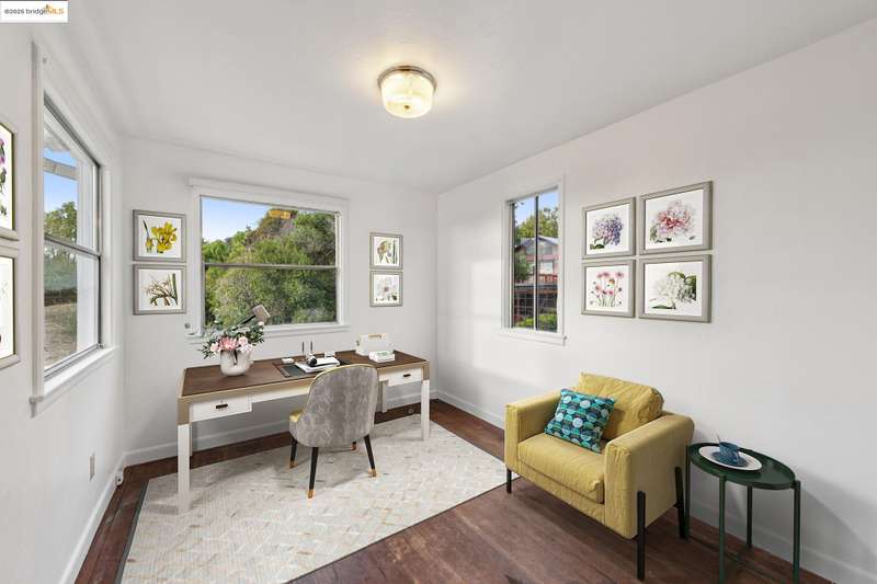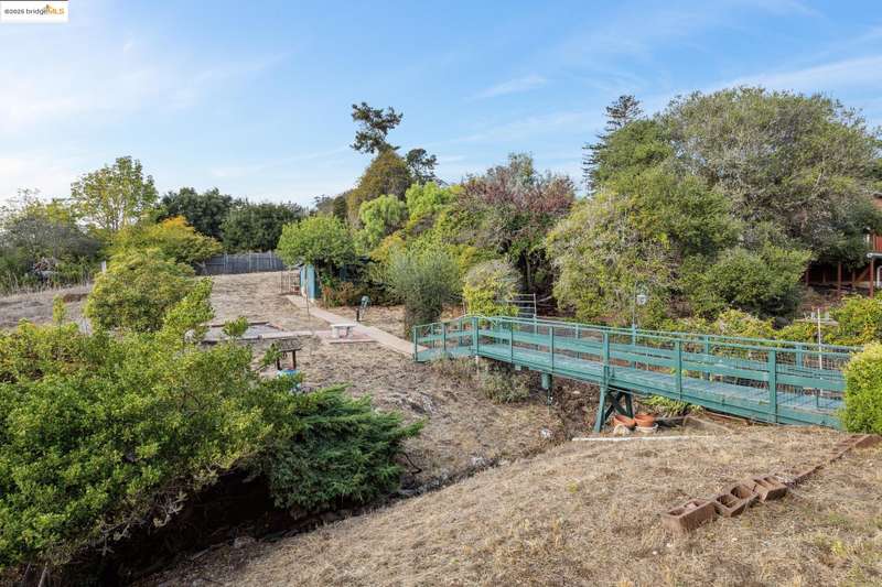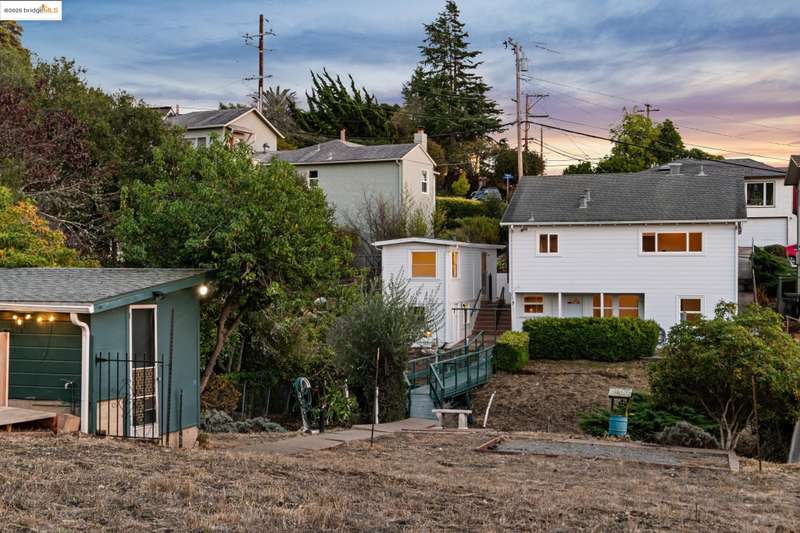 <strong>Possibilities as Endless as the Views!</strong> This unique property has so much to offer its new owners! Set on an extra-deep, over quarter-acre lot (per public record), the main house sits at the front with two bedrooms and one bathroom upstairs, plus a one-bed, one-bath unit below.* An adjacent structure has two rooms plus a full bath on the main level and a shared laundry and workshop below.* Keep traveling back, and you’ll cross a bridge over a sweet seasonal stream. Tucked at the back of the property is “Grandpa's hideaway”, complete with a full 1950s wet bar and vintage decor.* This secluded property spans to the top of the hill, where you have your own private perch to take in the breathtaking bridge-to-bridge views. Ideally situated just high enough up the hill to capture the impressive Bay views while still being easily accessible to all the amenities that make El Cerrito one of the Bay's most desirable cities. Ditch the car! You’ll be minutes from schools, shopping, parks, public transportation, and coveted local resources such as the El Cerrito Community Center and Public Pool. 7553 Stockton was one of the first homes in the neighborhood and was lovingly maintained by the same family for nearly 100 years. Recent improvements include double-pane windows, <strong>a complete foundation and drainage update (2022), new service and updated electrical system (2021)</strong>, plus new flooring (2022), and an updated kitchenette in the downstairs unit. The possibilities here are endless. Whether it be a spot for multigenerational living, an ideal living + home-office set-up, an opportunity to design your own space, or your very own urban farm, this special property is a blank slate for a new generation of dreamers. *Buyer to verify use of space. Neither seller nor listing agent has investigated or verified the accuracy of any of these sources of information nor that these spaces are or may be made into legally habitable spaces. Buyer must conduct their own investigation with the city and appropriate professionals and rely solely on that investigation.