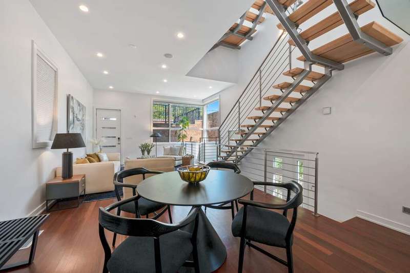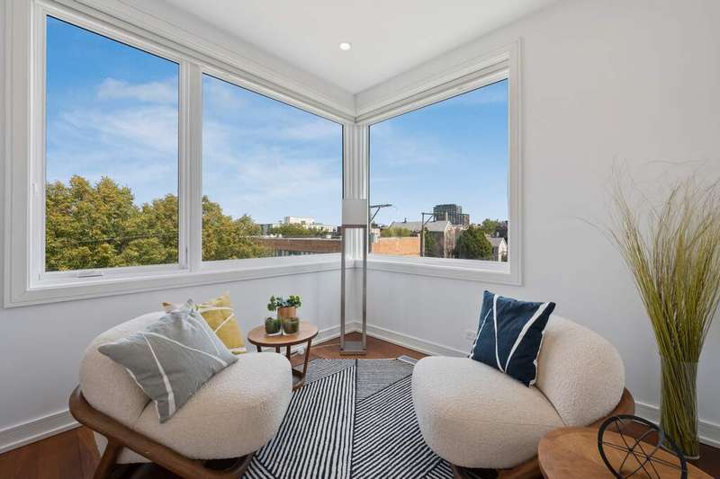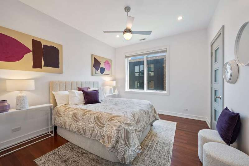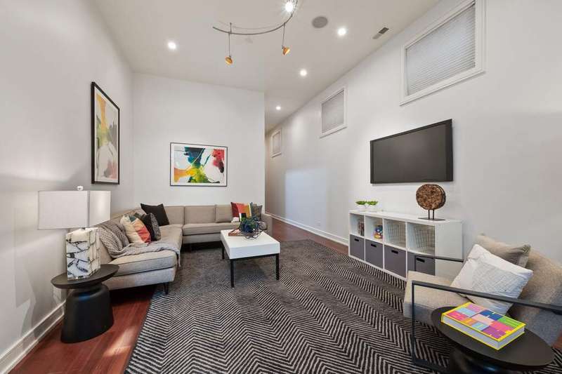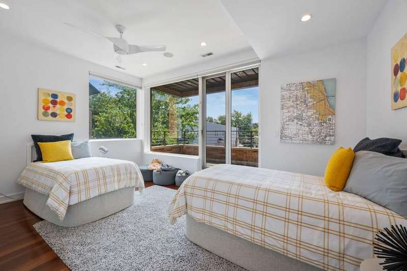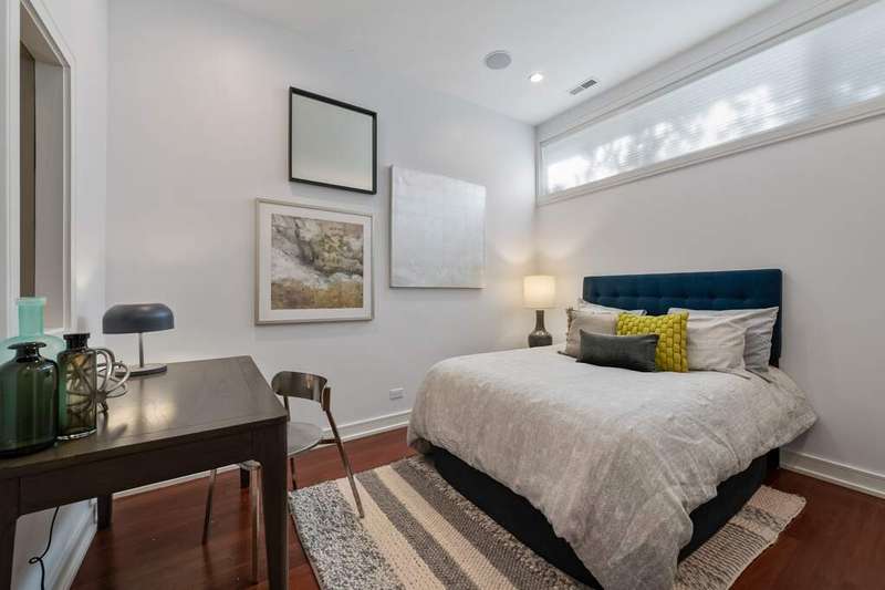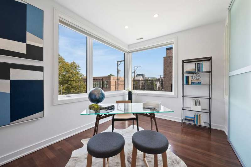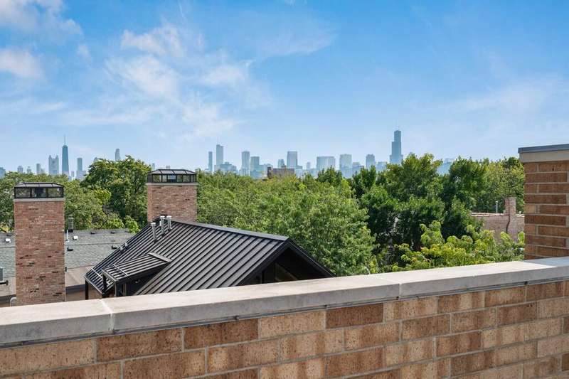 Welcome home to this sprawling modern oasis with five bedrooms, 3.5 bathrooms, a family room, dedicated office, wine cellar, and sauna. Located in the sought-after Pritzker School District, this over 5,000 sq ft modern masterpiece is just steps from Division Street and all the best that Bucktown and Wicker Park have to offer. Soaring ceilings throughout (10-12 feet) create an airy, dramatic feel. The ideal layout includes 4 bedrooms and a full laundry room on the upper level, along with multiple outdoor spaces-deck over the garage and a rooftop with unobstructed panoramic city views all year round. Light floods the home from every direction, thanks to a rare rear exposure and neighboring side yard. The chef's kitchen features professional-grade granite countertops, Arclinea cabinetry, Miele and Sub-Zero appliances, and opens to both the living room with fireplace and a stunning family room with separate dining area. This large and perfectly appointed kitchen makes cooking and entertaining a true experience. The primary bedroom provides you with serene privacy and the ultimate place for relaxation. Your en suite primary bath is truly spa-like, with a separate soaking tub, steam/shower system, and radiant heated floors. The incredible lower level includes a guest suite, a nearly 400-bottle brick wine cellar, second laundry center, and sauna. Zoned HVAC and a 2-car garage complete this exceptional home. No detail soared with recent updates to include new water heater, snow melt on stairs and walkway to house, newly installed decking on rooftop and additional decking and netting installed on garage roof. Ideally located between the intersection of Milwaukee Avenue/Damen Avenue and Western Avenue, near the North Branch of the Chicago River and the 606 Trail, enjoy walking to top rated restaurants, shopping, easy access to parks, public transportation and an abundance of activities.