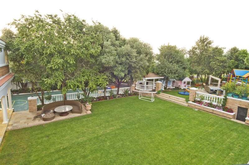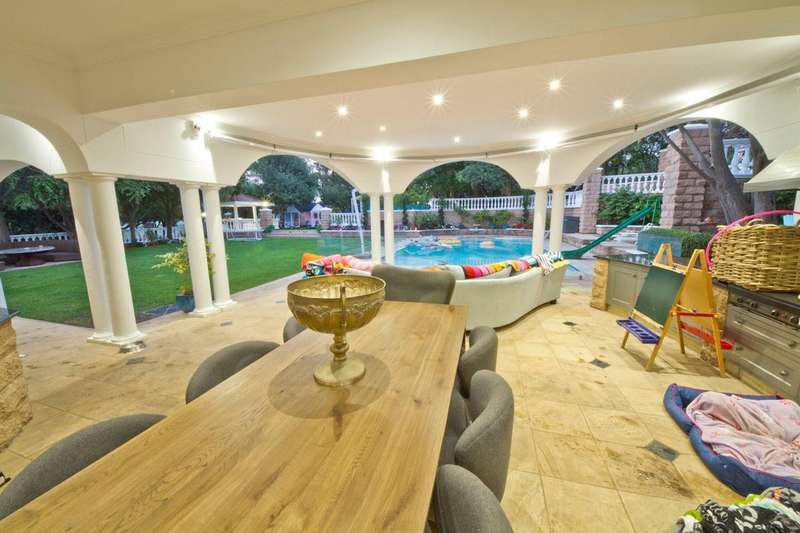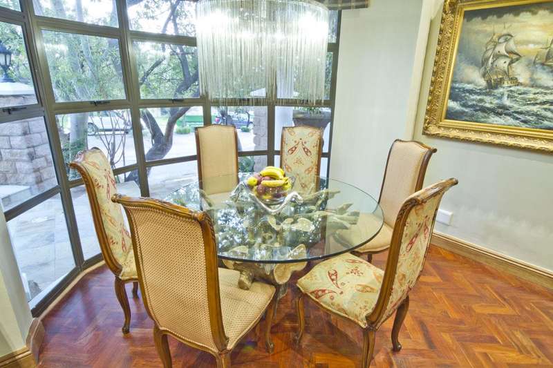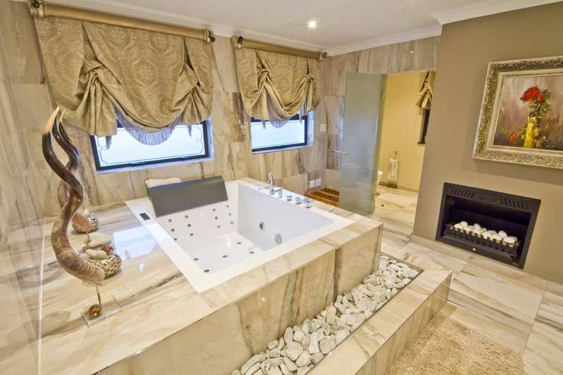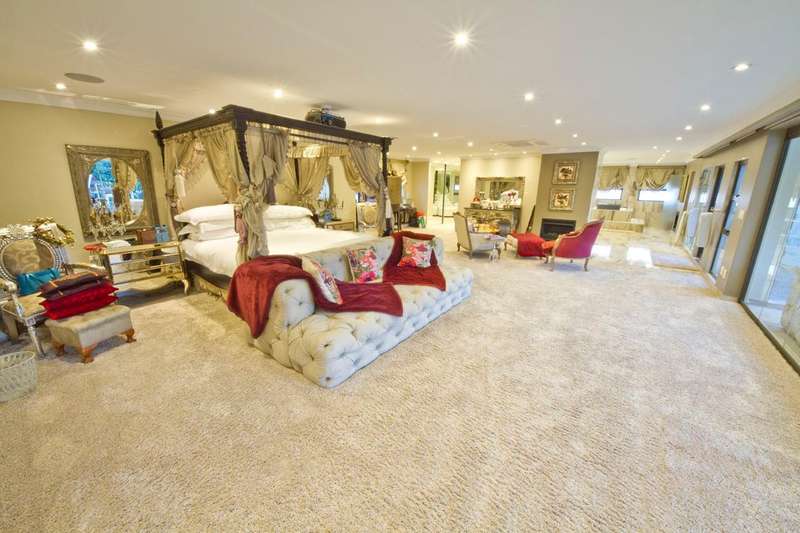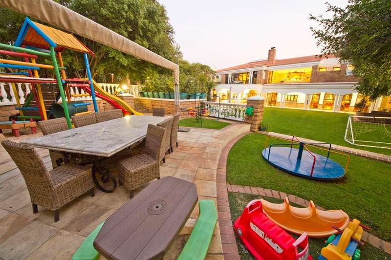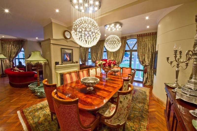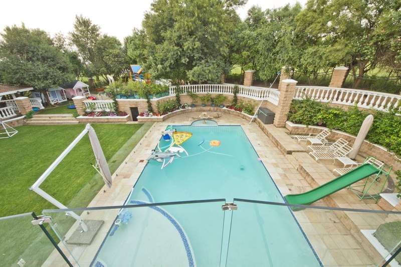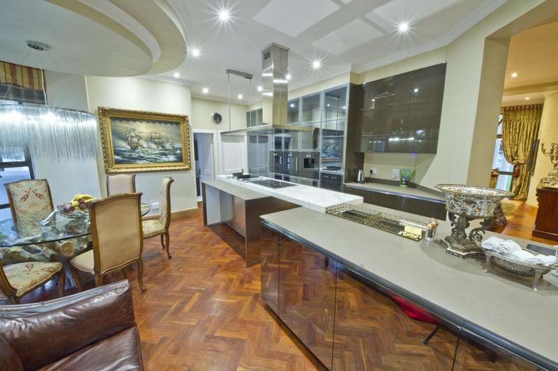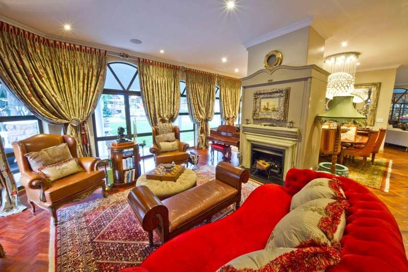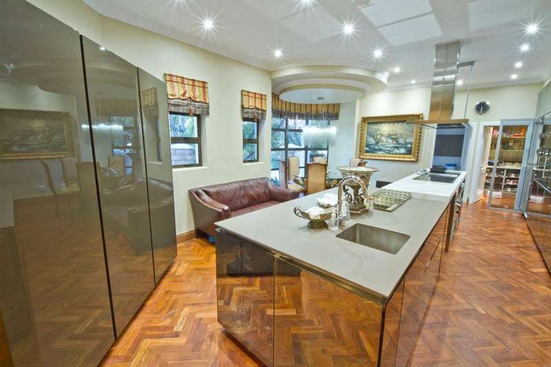 Get ready to live like royalty in the lap of luxury with this stunning, newly released home on one of the most coveted streets in Dainfern Golf Estate. A true celebration of dreams come true, this extraordinary estate offers access to the prestigious golf course and sits on a double stand spanning 2453m2, making it the ultimate in spacious living for the discerning family. As you step into the cavernous atrium, you'll be struck by the brilliant natural light pouring in from the large skylight. Feast your eyes on the newly appointed kitchen by Viro Casa, perfect for any aspiring chef with its three ovens, hot rock, Teppanyaki plate, built-in freezer and fridges, appliance cupboard, and cosy informal dining alcove. The scullery, pantry, and utility room are just some of the additional features that make this kitchen a true standout. Beautiful wooden parquet flooring is a highlight of the formal lounge, dining room, and second lounge, where you can enjoy a double-sided fireplace, in/out bar, and large windows and doors that open up onto the patio and garden. If that's not enough, an additional lounge area with wooden floors (currently used as a large gym) leads onto the patio and garden with a wall of windows. And for your guests, there's even a self-contained guest suite on the lower floor. Upstairs, a beautiful carpeted staircase leads you to five double bedrooms, all with full bathrooms and the most magnificent super-sized master suite fit for a king or queen. This opulent suite boasts four fireplaces, an HD projector and automated screen, automated blinds, Jacuzzi bath, Italian marble tiles, steam room, sauna, two showers (two indoor, two outdoor), outdoor drying area, lounge, and dressing room. And let's not forget the balcony overlooking the garden with majestic views. But that's not all! The large undercover patio includes a built-in braai and double warming drawers, perfect for outdoor entertaining. And speaking of outdoor living, the kiddie's paradise awaits with an extra-large heated pool (enclosed), magnificent playgrounds, mini tennis/basketball court, and boma, where adults can keep an eye on the little ones. Additional features include a garage housing five vehicles and one golf cart, guest toilet, cloakroom, server room, boiler room, store rooms, laundry chute, automated blinds in the main suite, air conditioning throughout, surround sound, kiln, security system, irrigation system, 2000L reservoir, treble staff quarters/suite with Viro Casa, and a full solar inverter system. This extraordinary home truly has it all!