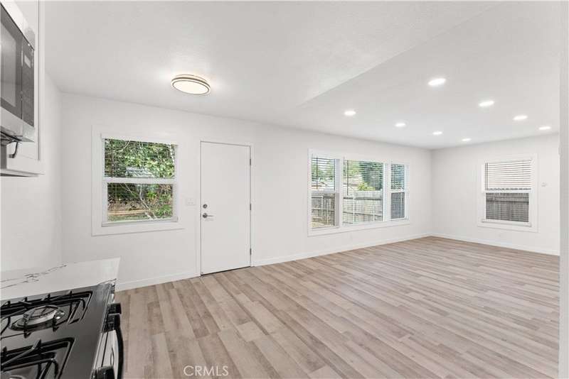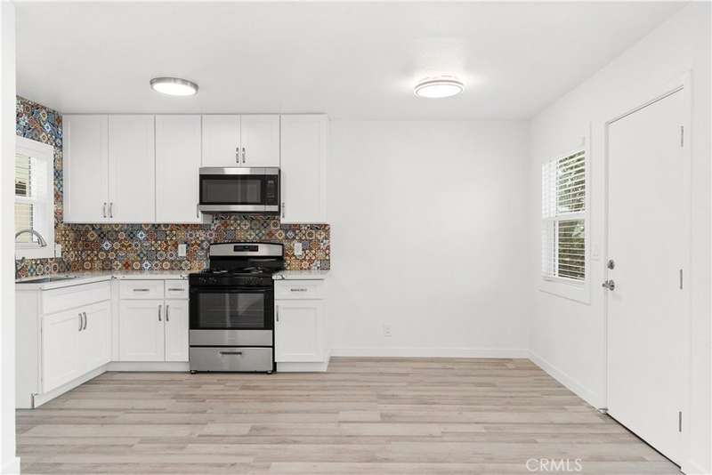 Remodeled 3-bedroom 1 bath home. Large back yard with room to build ADU. 1 car garage, Long Driveway, New Roof, New water heater, New double pane windows, New wall heater, Fully remodeled interior with New paint, New exterior paint, New waterproof vinyl flooring, New Recessed lights, Remodeled kitchen, New stainless steel appliances, Custom backsplash tile work, Quartz counter kitchen countertop, Mirrored closet doors in the bedrooms, Remodeled bathroom, New ceiling fans in the bedrooms, New garage door with opener, Laundry connections in the garage, Outdoor living with large concrete patio, New lighting and fresh landscaping with automated sprinkler system, Fruit trees-Kumquat, Lemon and Fig tree, Firepit in the back yard.