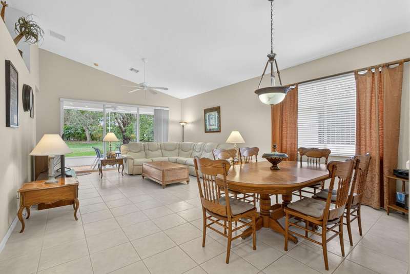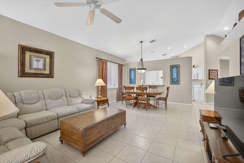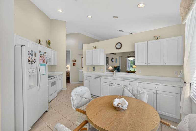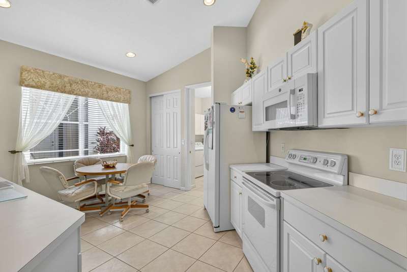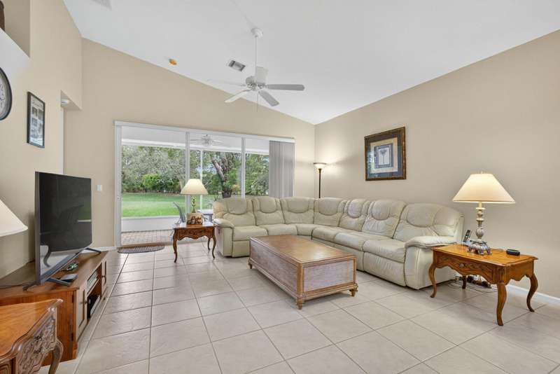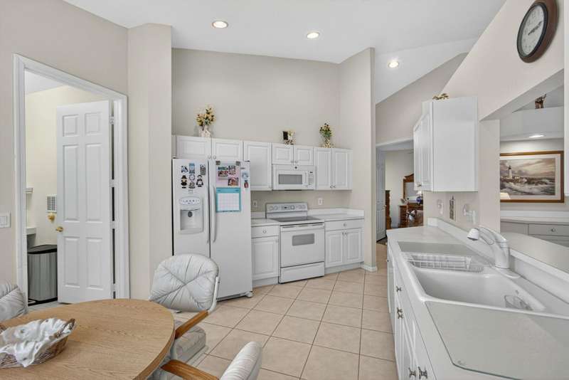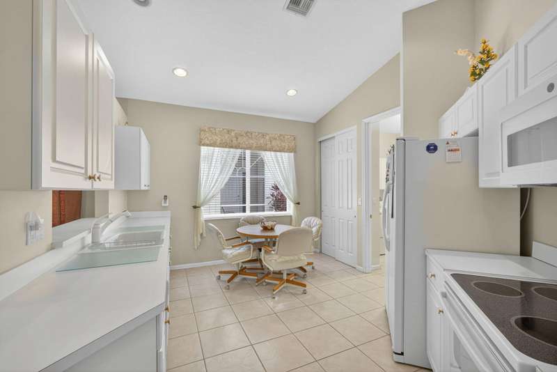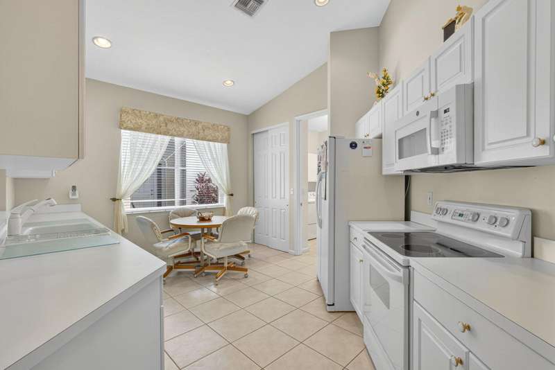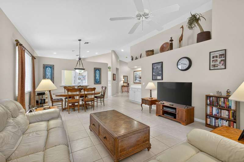 Welcome to this amazing 55+ very active adult community. This three beds, two baths, two car garage home has been lovingly cared for. Located on a large lot overlooking a nature reserve that offers privacy and serenity to enjoy from the large extended screened in patio. This home features a eat-in kitchen, a large dining/living room with volume ceilings. The primary bedroom offers a walk-in closet, large bathroom with a separate tub and shower. Two additional bedrooms with laminate flooring and volume ceilings. HOA fee includes cable - high speed internet - ADT monitoring- all lawn maintenance - 24-hour manned gate