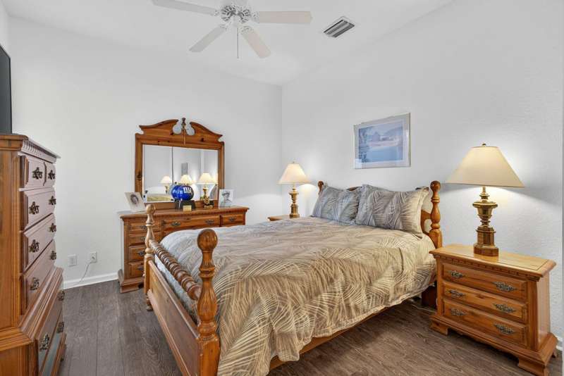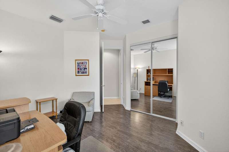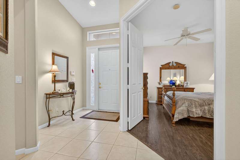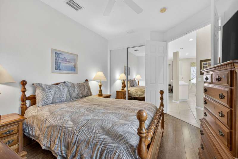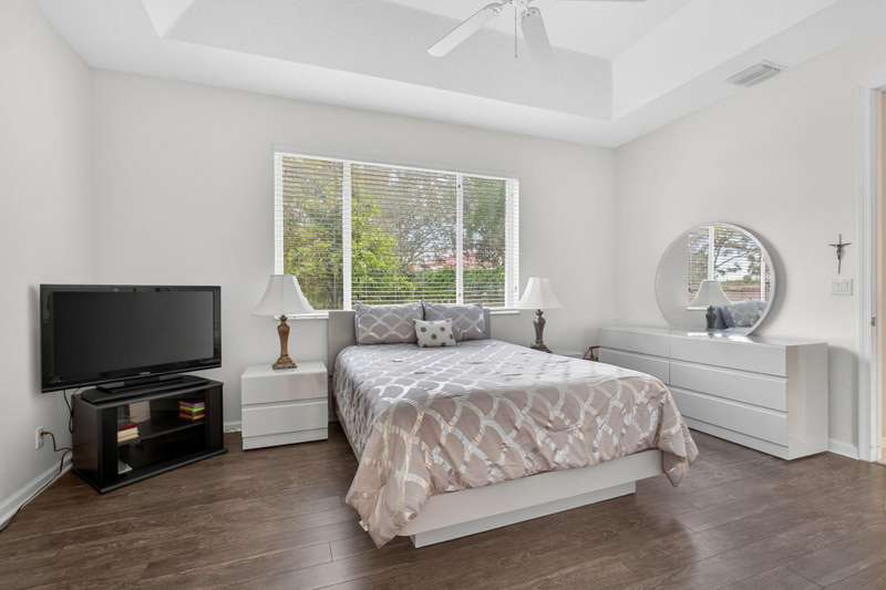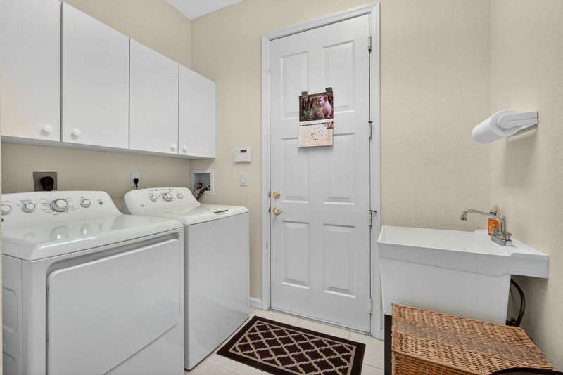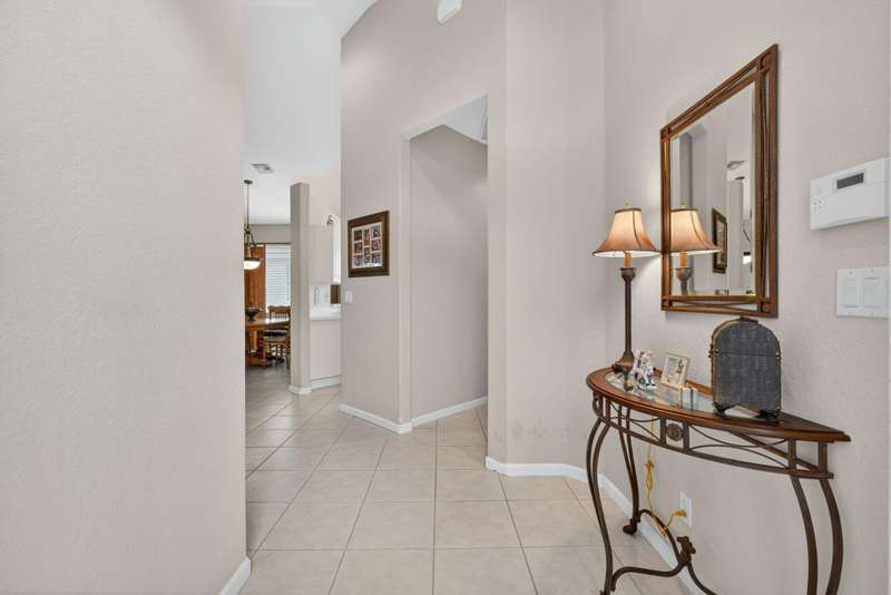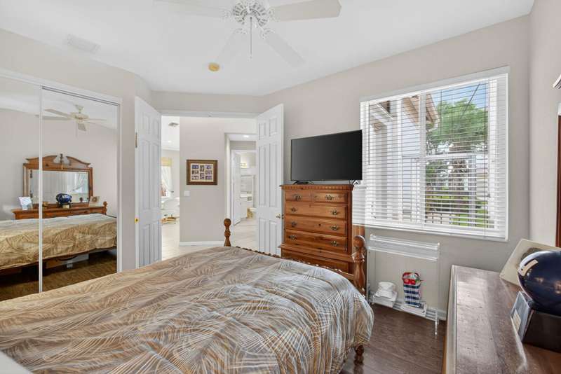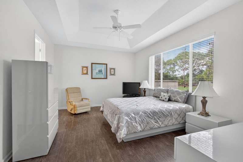 Welcome to this amazing 55+ very active adult community. This three beds, two baths, two car garage home has been lovingly cared for. Located on a large lot overlooking a nature reserve that offers privacy and serenity to enjoy from the large extended screened in patio. This home features a eat-in kitchen, a large dining/living room with volume ceilings. The primary bedroom offers a walk-in closet, large bathroom with a separate tub and shower. Two additional bedrooms with laminate flooring and volume ceilings. HOA fee includes cable - high speed internet - ADT monitoring- all lawn maintenance - 24-hour manned gate