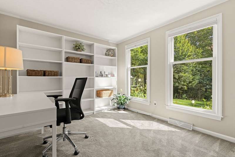 Tucked away in a private cul-de-sac neighborhood, this move-in ready versatile 4+ bed Colonial blends comfort & possibility. A welcoming stone path leads across the cleared grounds. Inside find a thoughtful layout: formal dining room flows to kitchen with granite counters/stainless appliances & spacious family room with cathedral beam ceilings and gas fireplace. Dedicated office provides the ideal work-from-home solution, while the elegant living room sets the stage for memorable gatherings. The highlight is the serene screened-in porch perfect for morning coffee or breezy dinners overlooking the private backyard. Upstairs are 4 generously sized bedrooms & 2 full baths. The walk-up attic offers expansion potential for a luxe primary suite, creative studio, or playroom. The finished basement provides flexibility for a game room or additional bedroom. With timeless architecture, abundant living space & room to grow, this home is a true New England treasure ready for its next chapter.