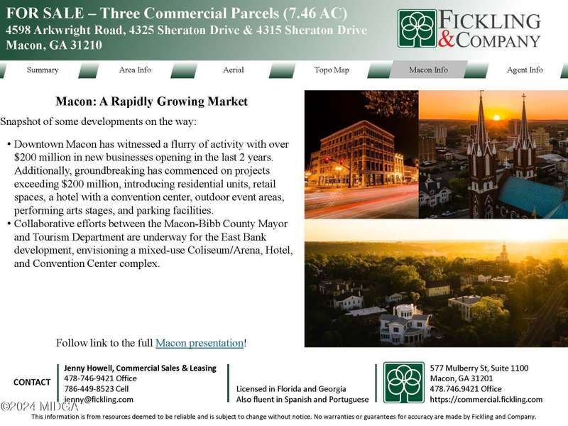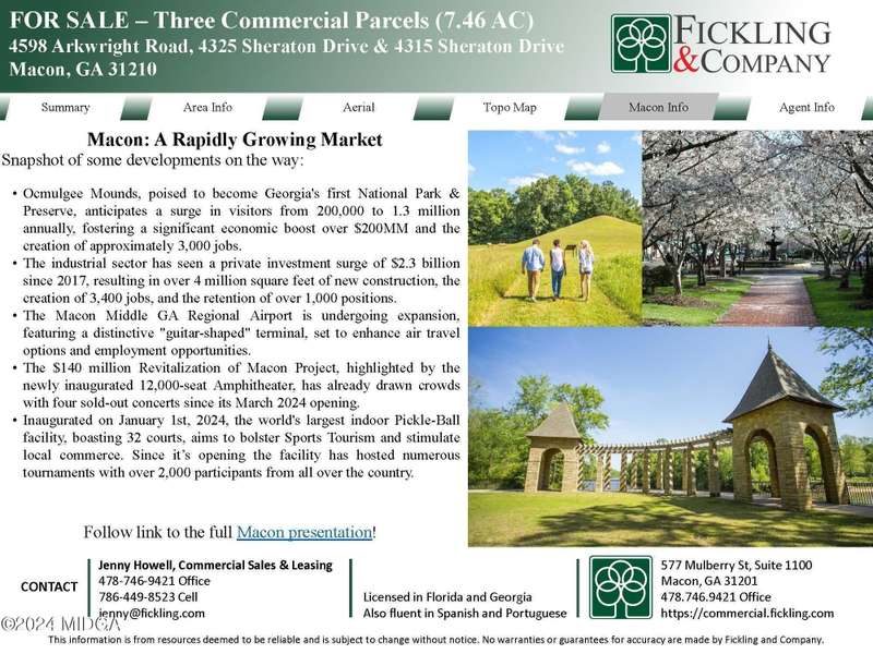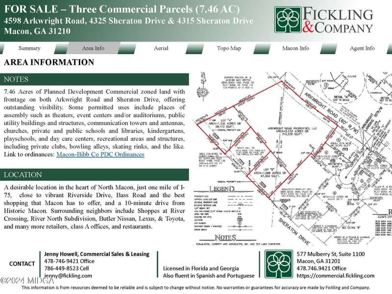 LOCATION: A desirable location in the heart of North Macon, just one mile of I-75, close to vibrant Riverside Drive, Bass Road and the best shopping that Macon has to offer, and a 10-minute drive from Historic Macon. Surrounding neighbors include Shoppes at River Crossing, River North Subdivision, Butler Nissan, Lexus, & Toyota, and many more retailers, class A offices, and restaurants.DESCRIPTION: 7.46 Acres of PDC zoned land (Planned Development Commercial) with frontage on both Akwright Road and Sheraton Drive, offering outstanding visibility. Some permitted uses include places of assembly such as theaters, event centers and/or auditoriums, public utility buildings and structures, communication towers and antennas, churches, private and public schools and libraries, kindergartens,playschools, and day care centers, recreational areas and structures, including private clubs, bowling alleys, skating rinks, and the like. Parcels M030-0112 and M030-0113 are also included.