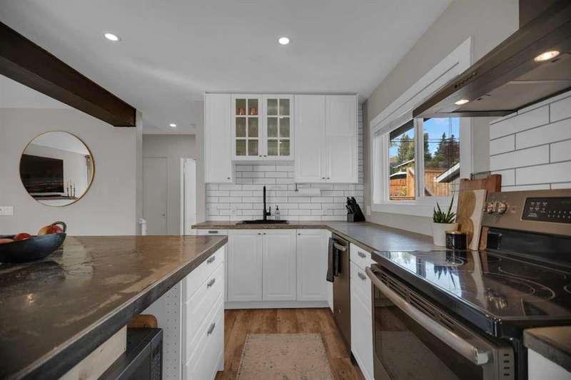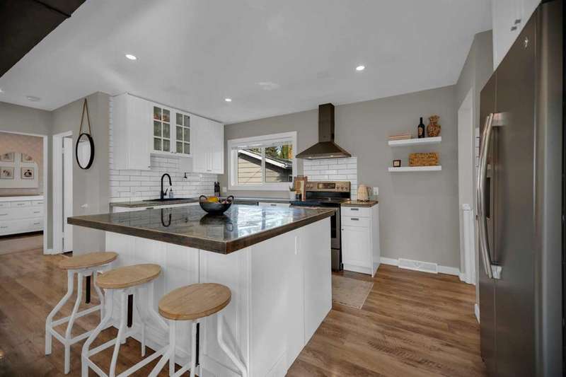 An amazing opportunity to own this bungalow that is FULLY RENOVATED and refurbished, top to bottom, truly a turnkey property that sits on a quiet, tree lined crescent in the inner-city neighborhood of Haysboro! The community provides easy access to major arteries, established schools, public transportation, shopping and entertainment amenities, and it’s a short walk to the LRT STATION. This gorgeous home offers beautiful curb appeal with a massive front deck and manicured front lawn, and inside the floor plan has been altered to create an open space perfect for families and entertaining. Loads of windows fill the home with natural daylight, showcasing a large living room with cozy fireplace, dining nook, and chef worthy kitchen all adjacent to each other. The fully renovated kitchen features fresh white cabinets and drawers, stone countertops, stainless steel appliances, and a huge island with even more storage. The main level boasts 2 bedrooms, including a primary suite with PAX SYSTEM, and a “mostly” new 4 piece bath. The lower level was COMPLETELY REDONE in 2024 and offers a large rumpus room, bedroom with egress window, and an amazing bathroom with oversized shower, tile to ceiling, and black trimmed sliding glass doors. A fully finished laundry room with pocket door provides storage and function. More upgrades include luxury vinyl plank flooring up & down, new plumbing (including stack and updated sewer line to city with backflow preventer), new electrical, new windows in kitchen and bedrooms + all 4 in the basement, spray foam insulation on basement walls for higher R value and sound protection, air conditioning added in 2023, roof 2016, and garage roof 2024. On the exterior you’ll find a gorgeous backyard with single detached garage, mature landscaping, deck and patio, newer fence, gravel pad for RV or extra vehicle, and re-levelled yard with new sod. Even the screen door is NEW! Pride of ownership is evident throughout this beautiful home!