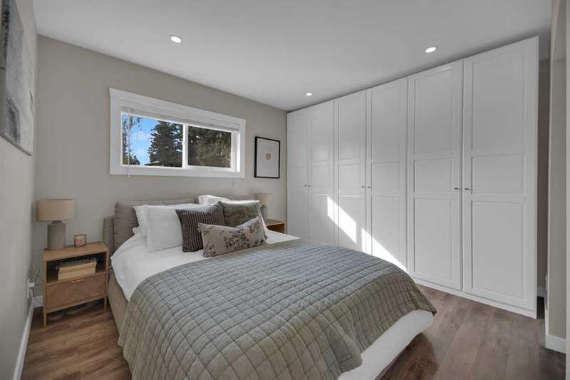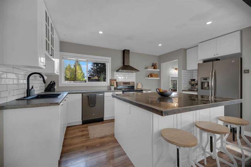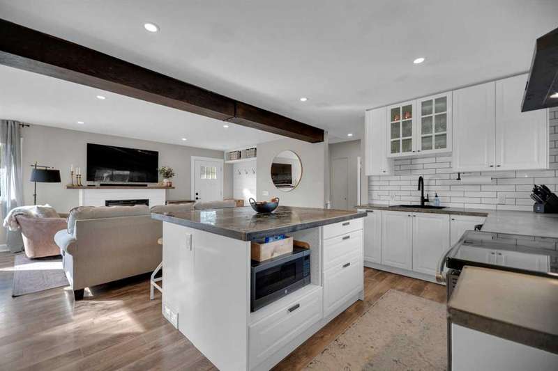 An amazing opportunity to own this bungalow that is FULLY RENOVATED and refurbished, top to bottom, truly a turnkey property that sits on a quiet, tree lined crescent in the inner-city neighborhood of Haysboro! The community provides easy access to major arteries, established schools, public transportation, shopping and entertainment amenities, and it’s a short walk to the LRT STATION. This gorgeous home offers beautiful curb appeal with a massive front deck and manicured front lawn, and inside the floor plan has been altered to create an open space perfect for families and entertaining. Loads of windows fill the home with natural daylight, showcasing a large living room with cozy fireplace, dining nook, and chef worthy kitchen all adjacent to each other. The fully renovated kitchen features fresh white cabinets and drawers, stone countertops, stainless steel appliances, and a huge island with even more storage. The main level boasts 2 bedrooms, including a primary suite with PAX SYSTEM, and a “mostly” new 4 piece bath. The lower level was COMPLETELY REDONE in 2024 and offers a large rumpus room, bedroom with egress window, and an amazing bathroom with oversized shower, tile to ceiling, and black trimmed sliding glass doors. A fully finished laundry room with pocket door provides storage and function. More upgrades include luxury vinyl plank flooring up & down, new plumbing (including stack and updated sewer line to city with backflow preventer), new electrical, new windows in kitchen and bedrooms + all 4 in the basement, spray foam insulation on basement walls for higher R value and sound protection, air conditioning added in 2024, roof 2016, and garage roof 2024. On the exterior you’ll find a gorgeous backyard with single detached garage, mature landscaping, deck and patio, newer fence, gravel pad for RV or extra vehicle, and re-levelled yard with new sod. Even the screen door is NEW! Pride of ownership is evident throughout this beautiful home!