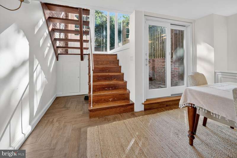 **NEWLY PRICED**Attractive four bedroom, two full and two half baths home located in Georgetown just steps to some of the finest dining and shopping in the city. Entry level features a large living room with wood burning fireplace, family room with built in bookshelves and gas fireplace, half bath. Steps down to the rear fenced yard with flagstone patio, additional steps down to the dining room with built-ins, and table space kitchen and half bath as well as washer & dryer. On the upper level you will find three bedrooms, and two fill bath. The finished fourth floor has a bedroom with closet or bonus room.Easy to show Sentrilock on front door