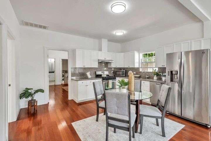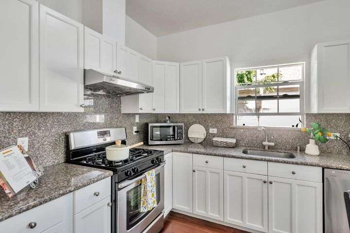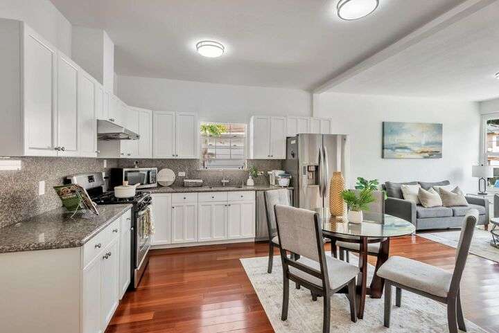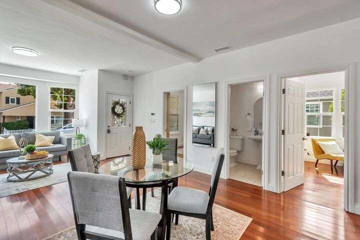 AMAZING VALUE! This updated Craftsman-style home offers a rare and exceptional opportunity for homeowners and investors alike, located just minutes from everything downtown San Mateo has to offer. Spanning approx.1,740 sq ft, the main home features bright, open-concept living with gleaming hardwood floors, three bedrooms (two of which are en-suite), and a dedicated office/den with access to the backyard. Recent high-value infrastructure upgrades, including the replacement of the sewer lateral line in 2018 and a brand new long driveway, provide peace of mind. This property is also highly versatile, featuring a separate studio (ADU) with private access, a full kitchen, and a full bathroom, perfect for generating rental income or accommodating guests. A 77 ft long driveway provides ample off-street parking for up to four sedans. Quick access to Caltrain, Fwy 101, and a vibrant downtown with countless restaurants, shops, and amenities makes this the ideal home and investment.